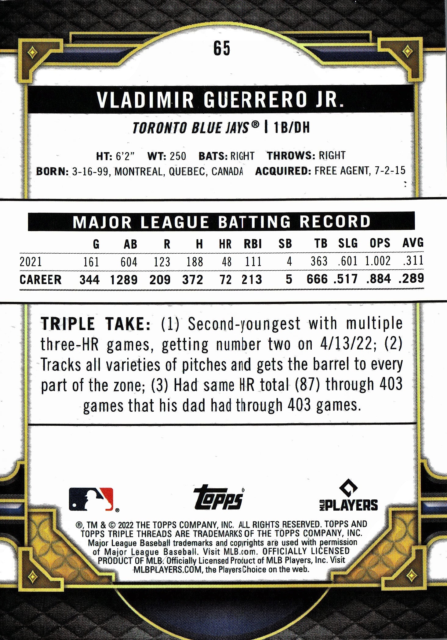 2022 Topps Threads Purple Vladimir Guerrero Jr /299 #65 Toronto Blue Jays