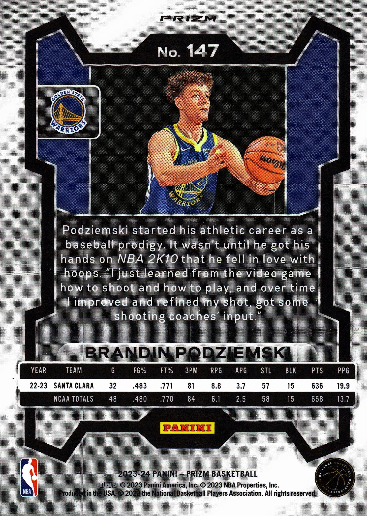 2023 Panini Prizm NBA Blue White Red Brandin Podziemski RC #147 Golden State Warriors