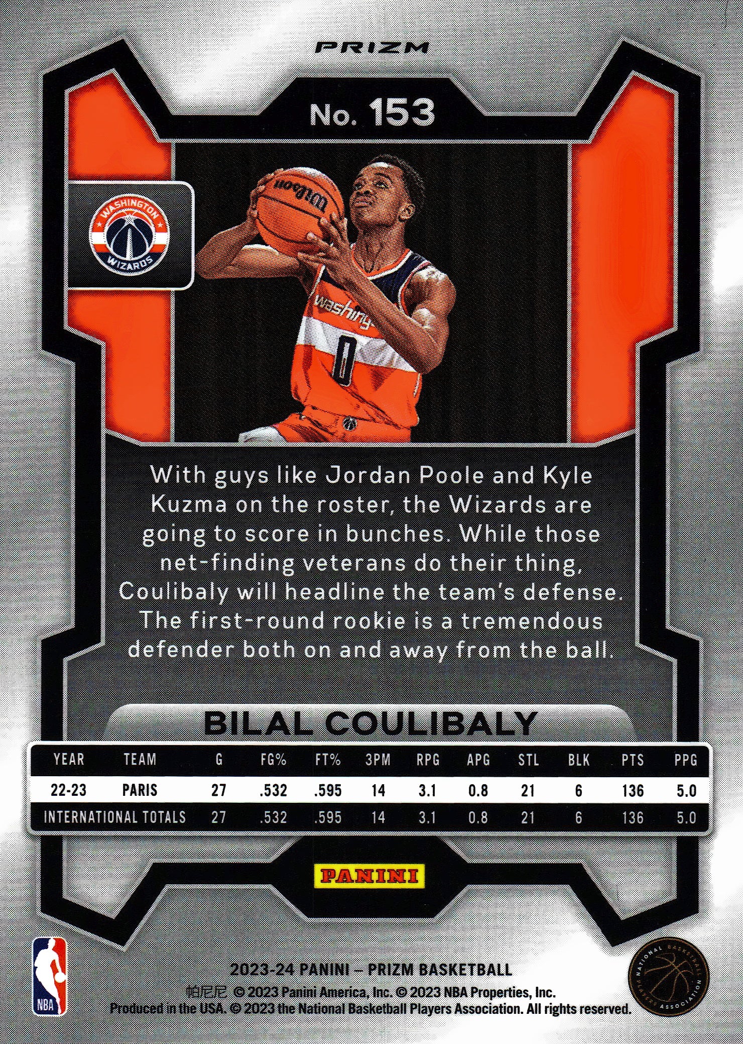 2023 Panini Prizm NBA Red Cracked Ice Bilal Coulibaly RC #153 Washington Wizards
