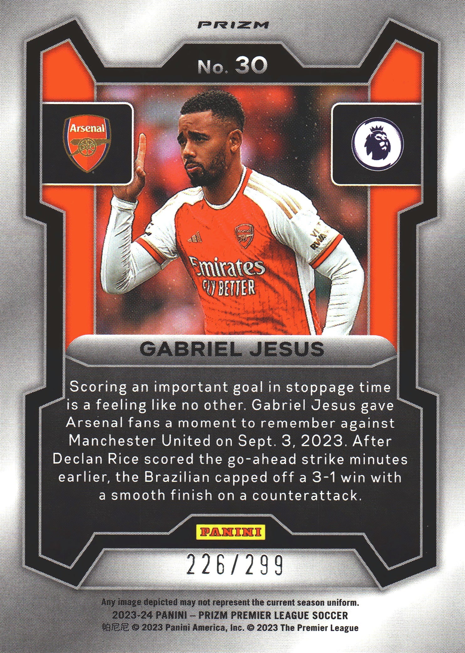 2023 Panini Prizm Premier League Blue /299 Gabriel Jesus #30 Arsenal