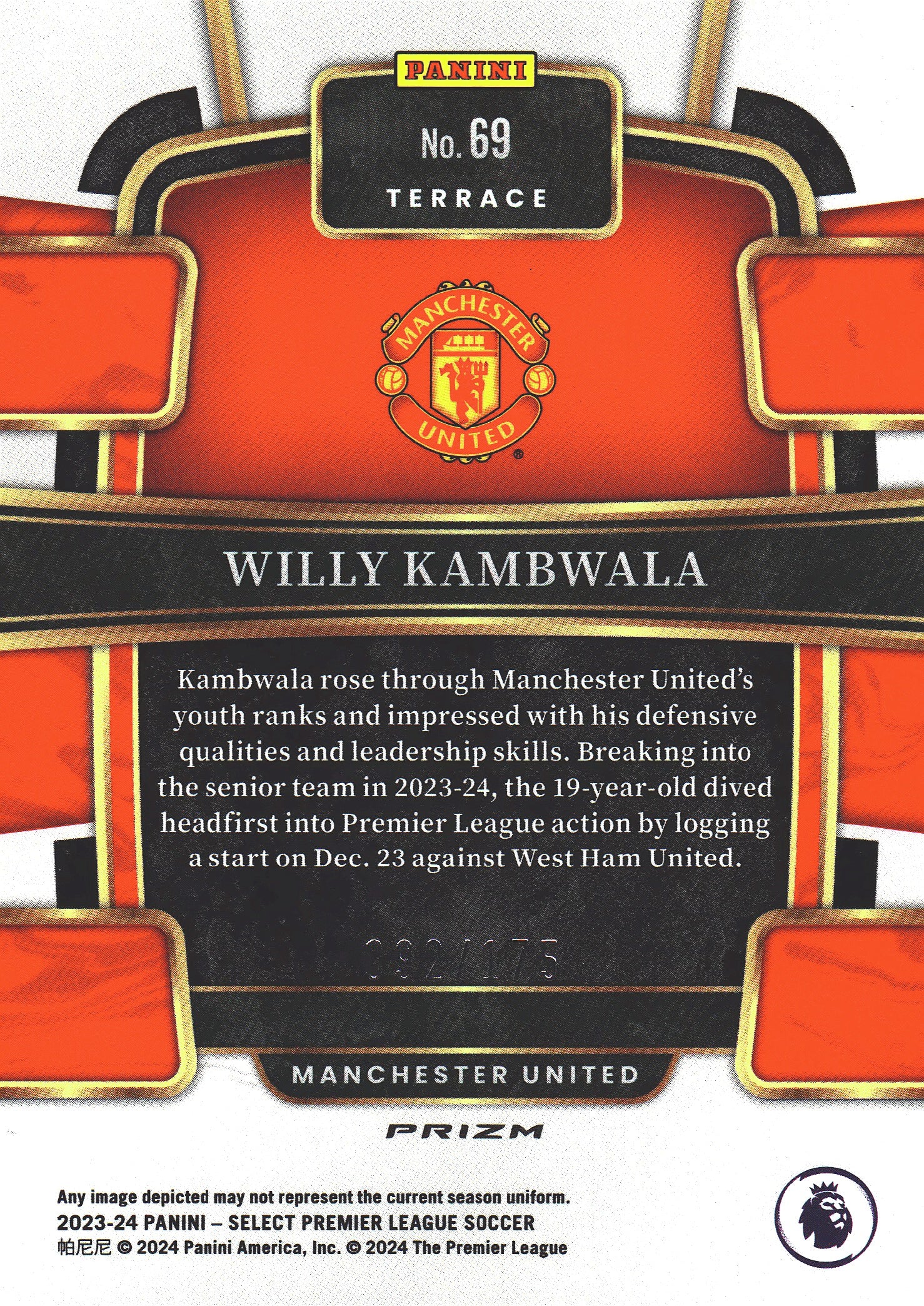 2023 Panini Select Premier League Camo /175 Willy Kambwala RC #69 Manchester United
