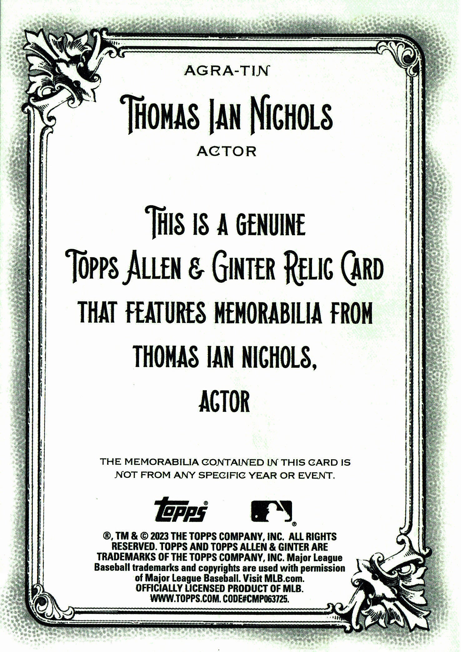 2023 Topps Allen & Ginter Relic Thomas Ian Nichols #AGRA-TIN Reste du monde / Autres