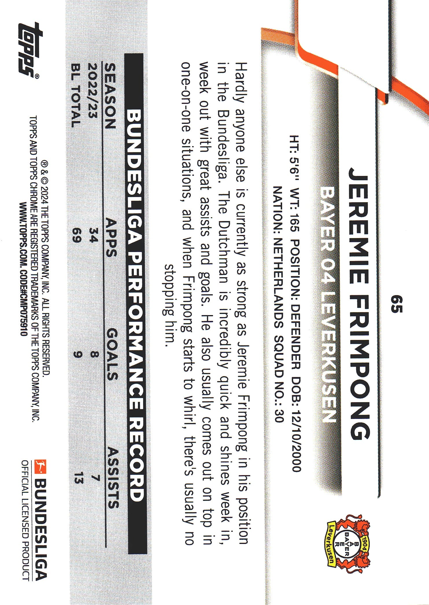 2023 Topps Bundesliga Jade Edition Jeremie Frimpong #65 Bayer Leverkusen