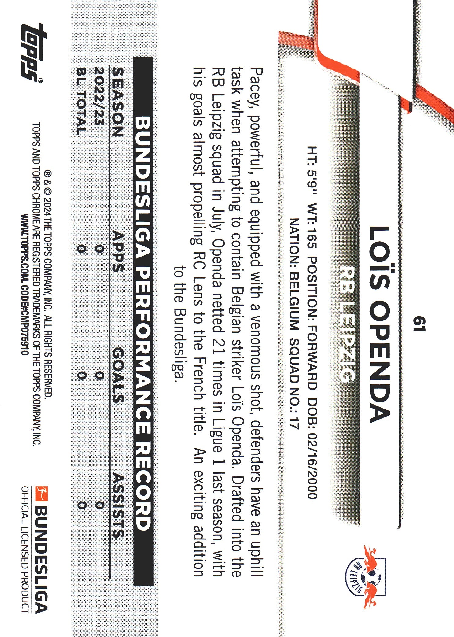 2023 Topps Bundesliga Jade Edition Lois Openda #61 RB Leipzig