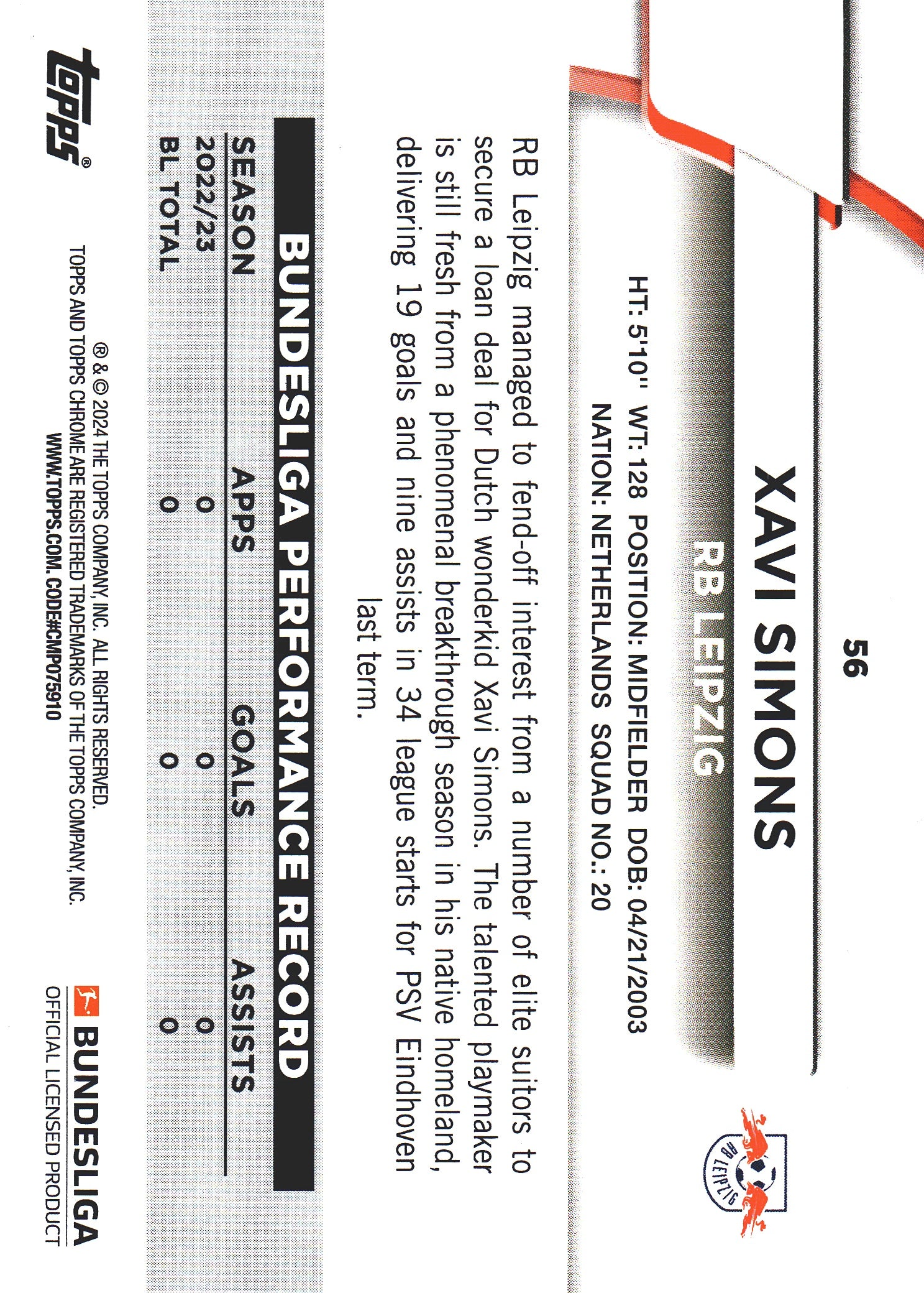 2023 Topps Bundesliga Jade Edition Xavi Simons #56 RB Leipzig