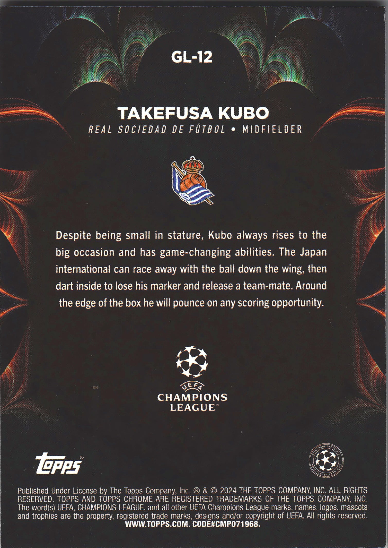 2023 Topps Chrome Golazo Orange Lava SP Takefusa Kubo #GL12 Real Sociedad