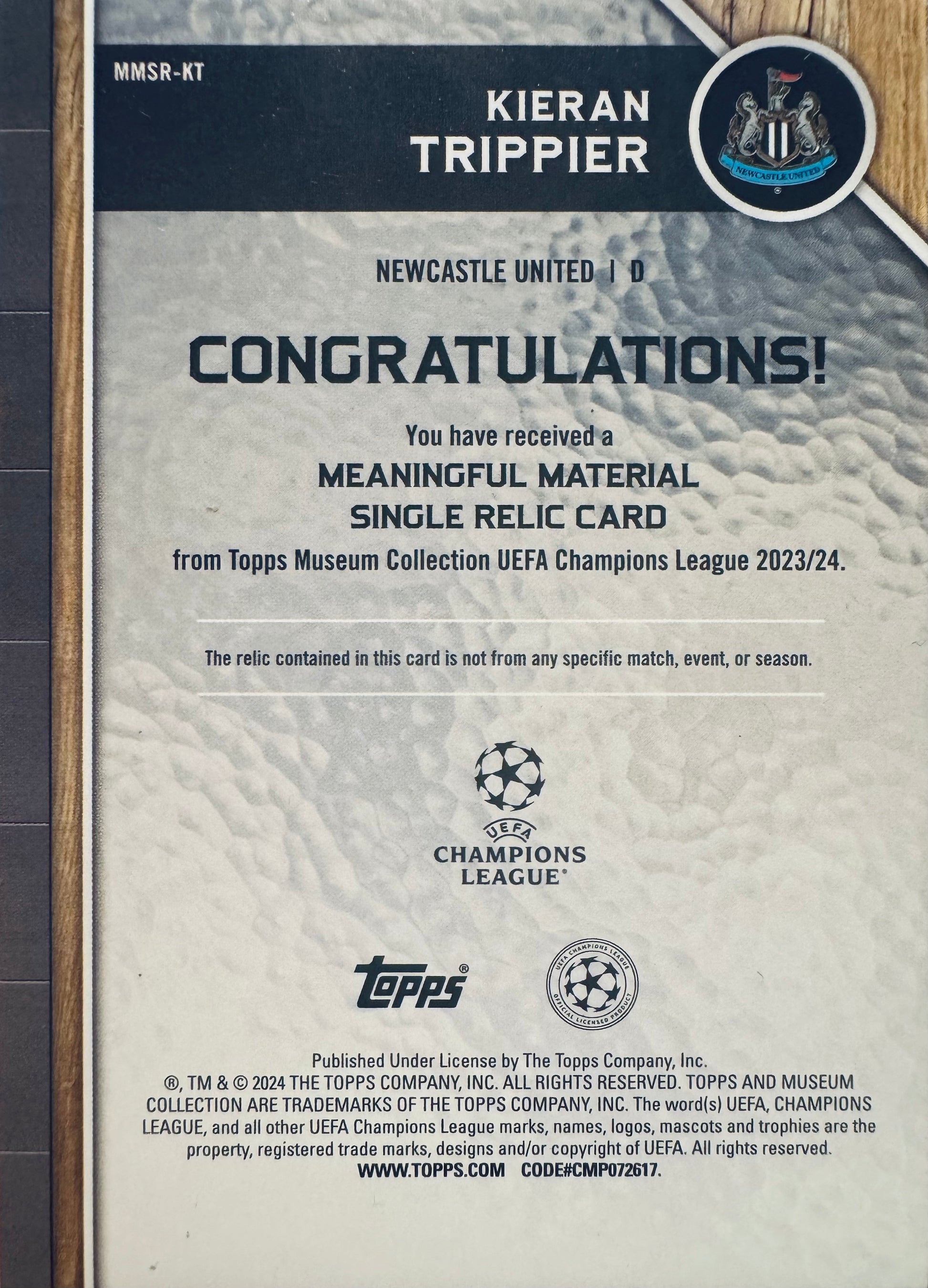 2023 Topps Museum Kieran Trippier Relic /199 #MMSR-KT Newcastle United