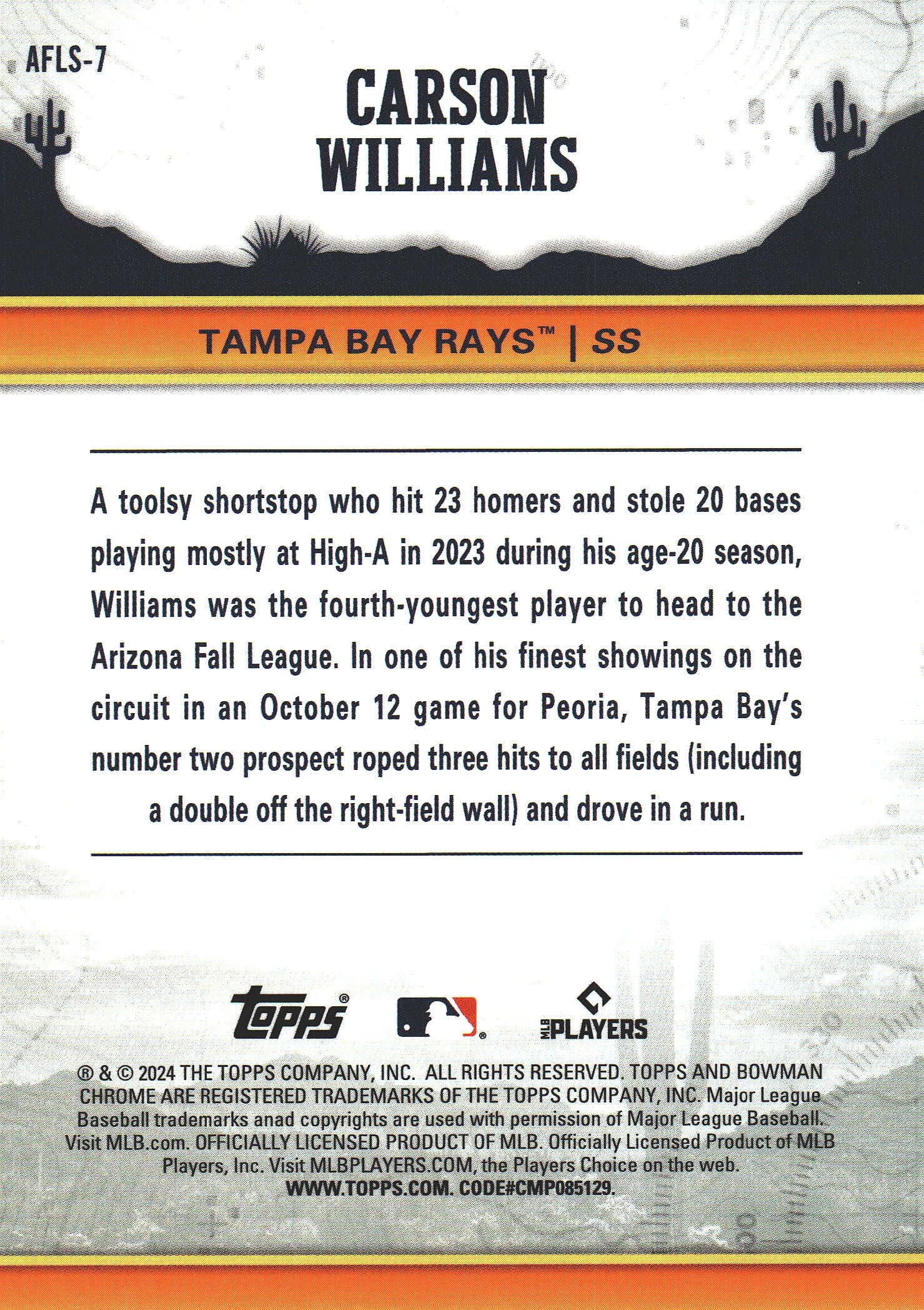 2024 Topps Bowman Chrome AFL Fall Stars Carson Williams #AFLS-7 Tampa Bay Rays