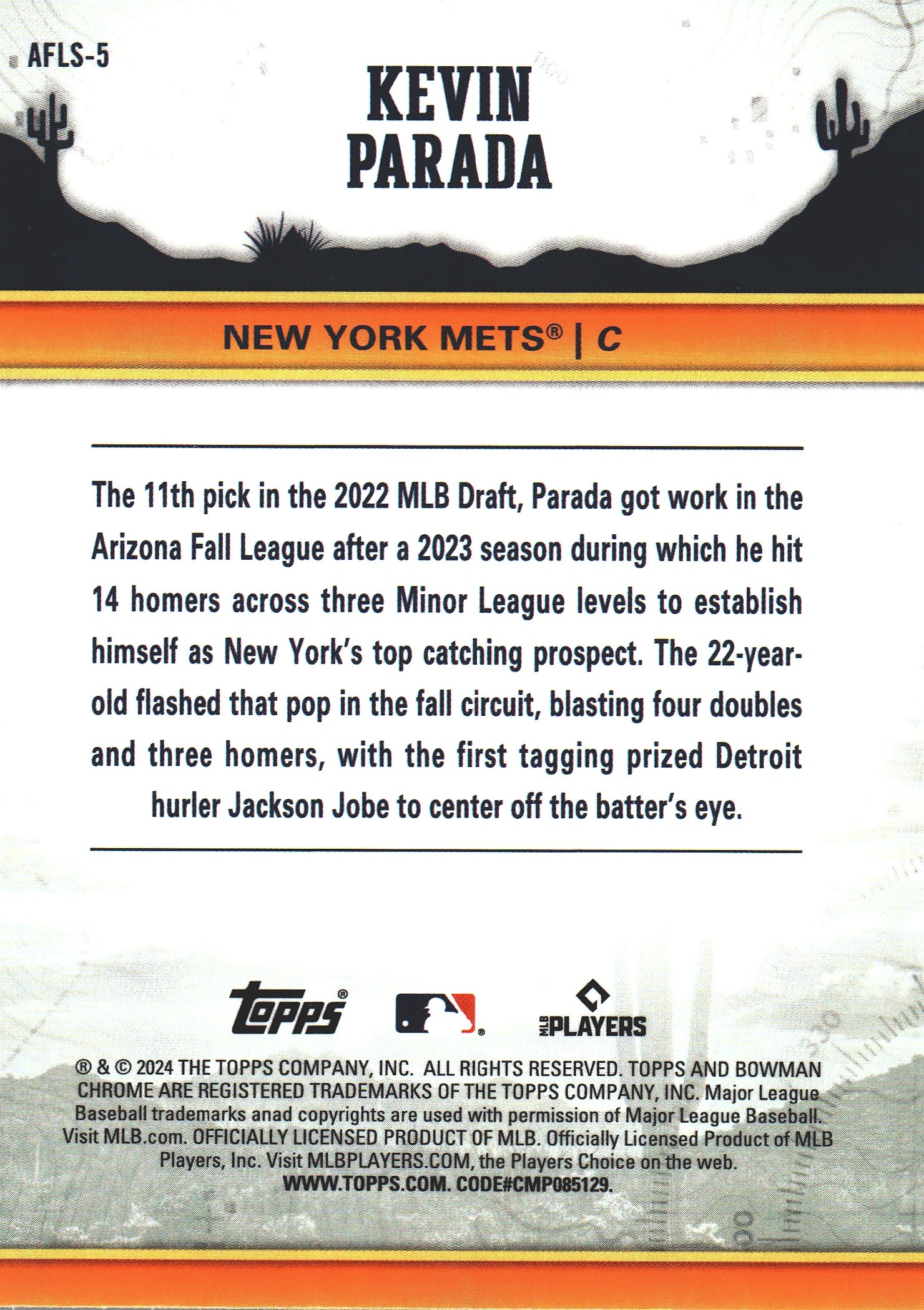 2024 Topps Bowman Chrome AFL Fall Stars Kevin Parada #AFLS-5 New York Mets