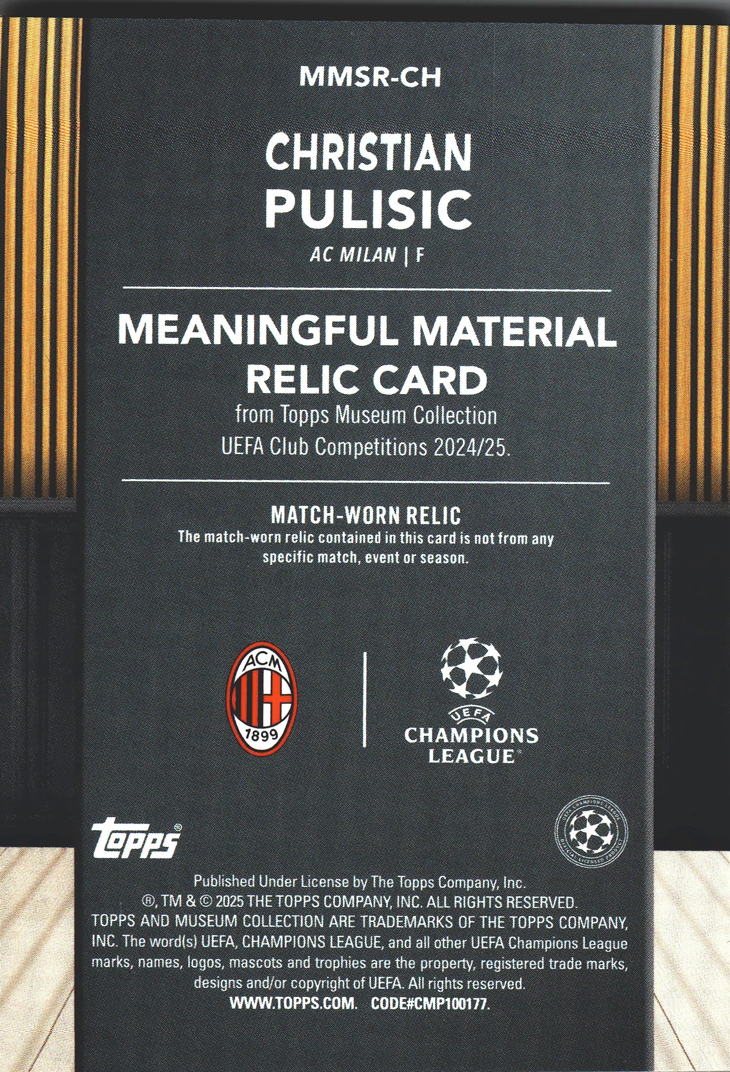 2024 Topps Museum Christian Pulisic Relic /150 #MMSR-CH AC Milan