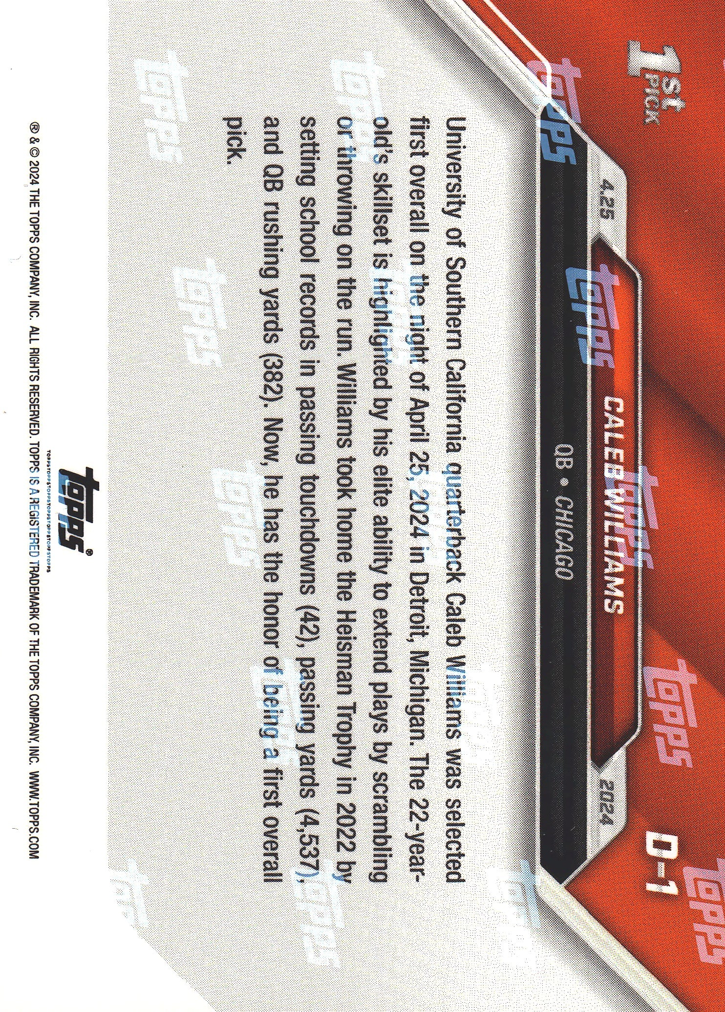 2024 Topps Now 1st Pick Caleb Williams #D-1 Chicago Bears