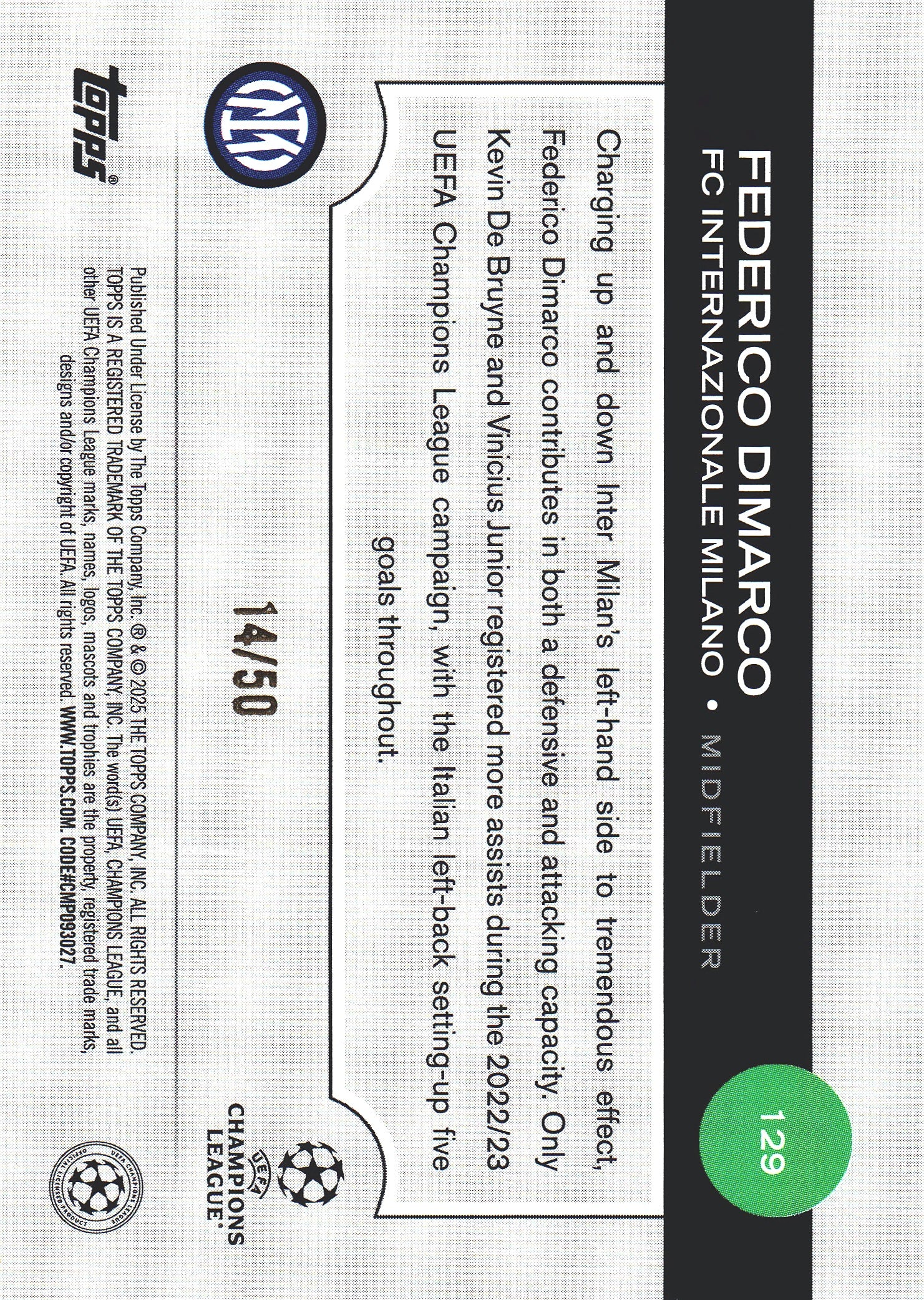 2024 Topps UCC Gold /50 Federico Dimarco #129 Inter Milan