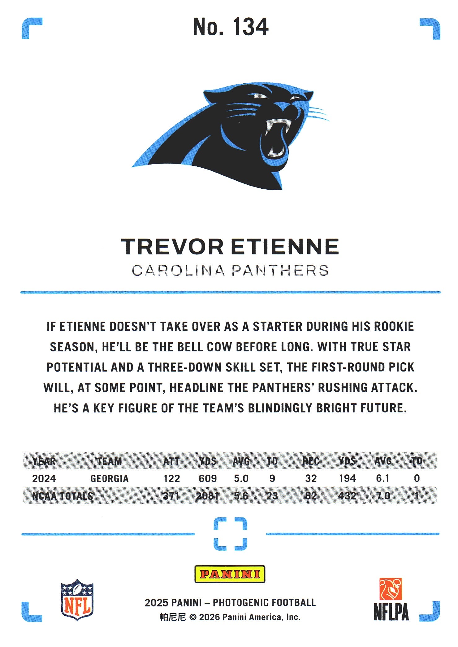 2025 Panini Photogenic Trevor Etienne RC #134 Carolina Panthers
