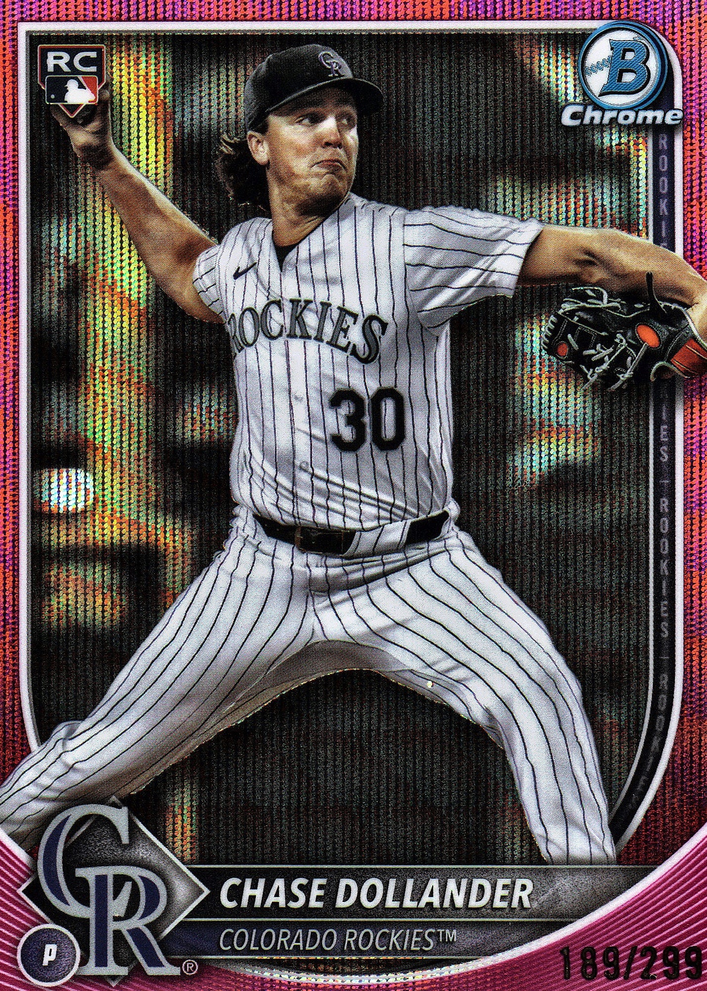 2025 Topps Bowman Chrome Fuchsia Wave /299 Chase Dollander #62 Colorado Rockies