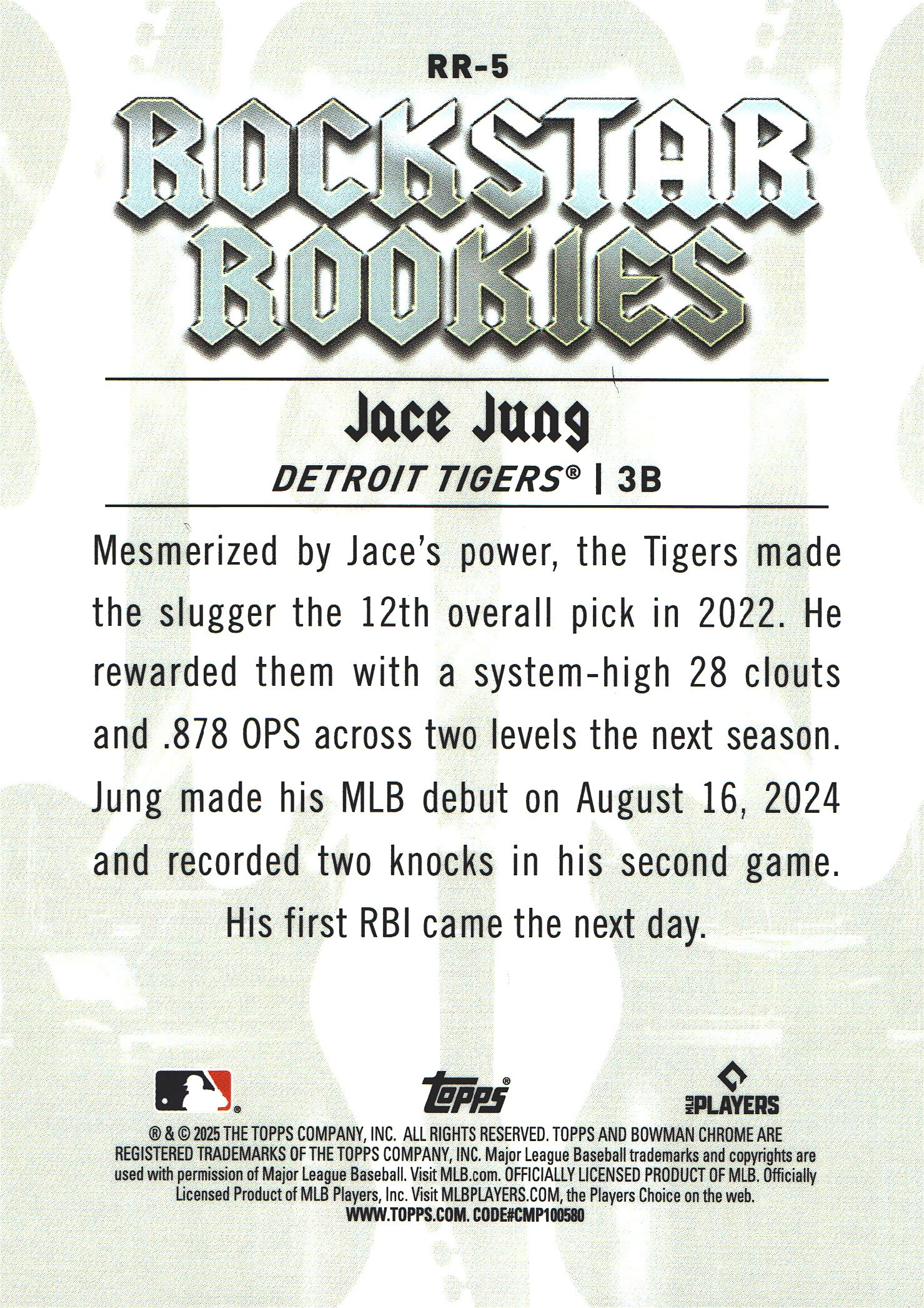 2025 Topps Bowman Chrome Jace Jung Rockstar Rockies RC Orange /25 #RR-5 Detroit Tigers