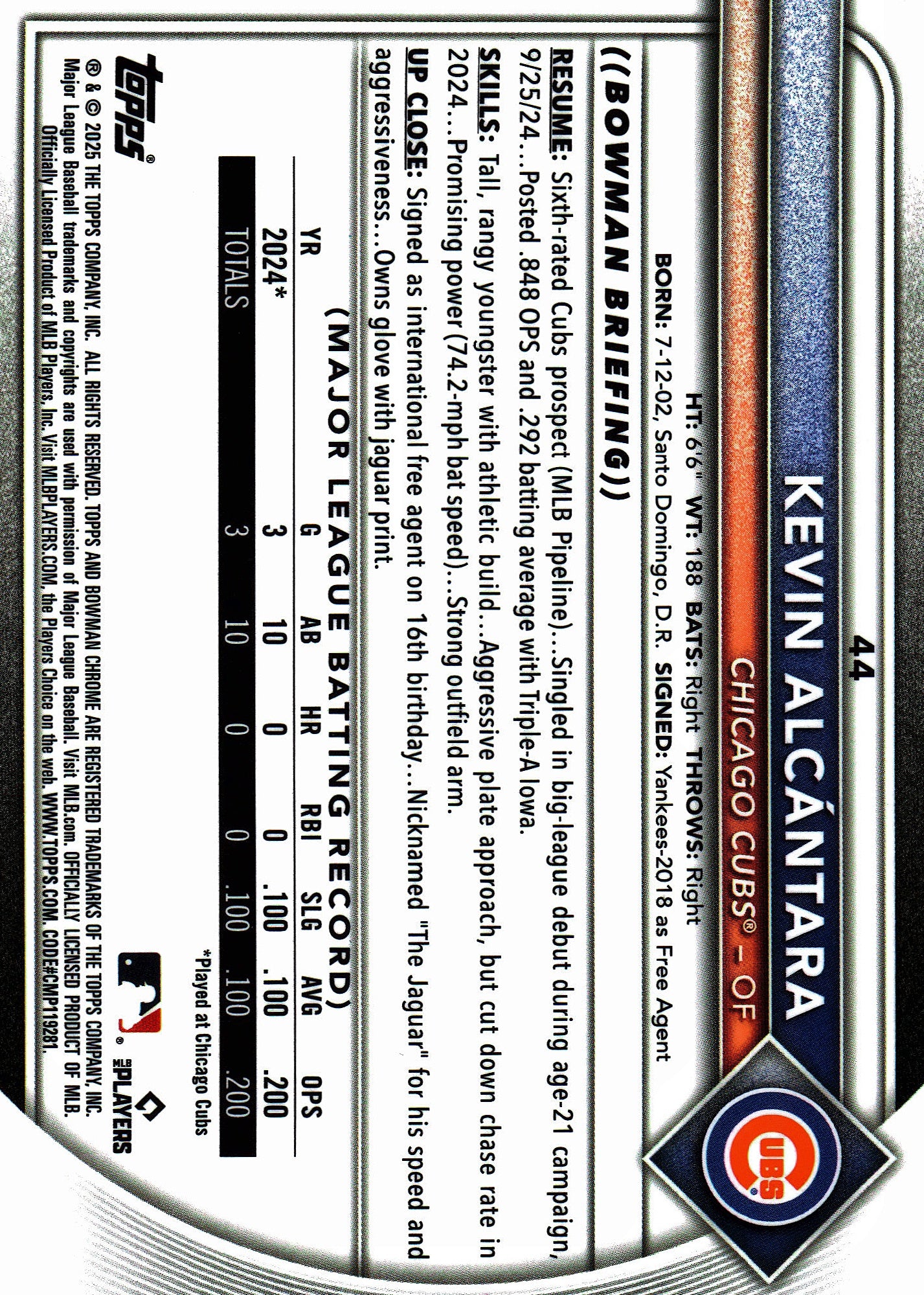 2025 Topps Bowman Chrome Red Rookie Logo Kevin Alcantara RC #44 Chicago Cubs