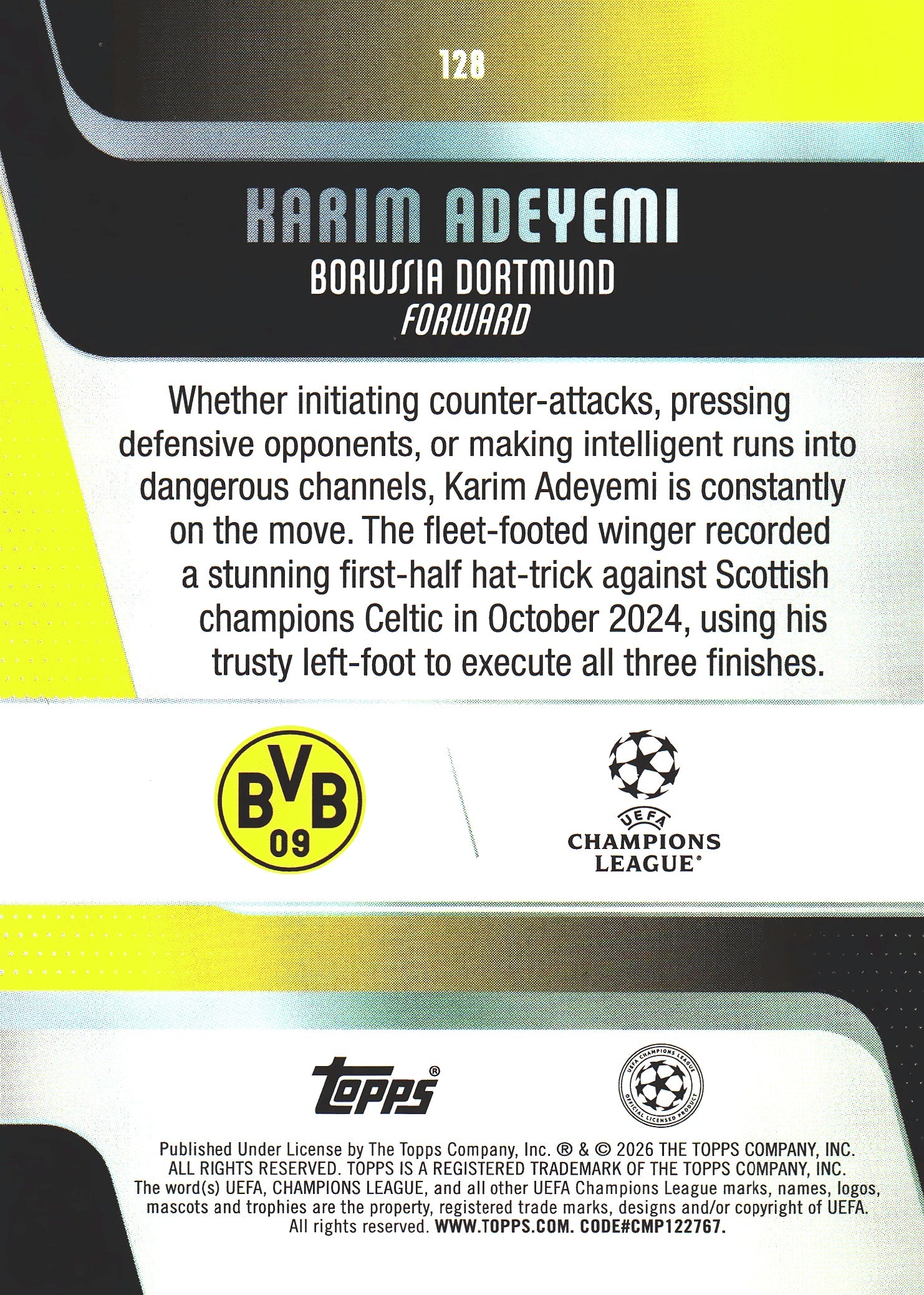 2025 Topps UCC Karim Adeyemi #128 Borussia Dortmund