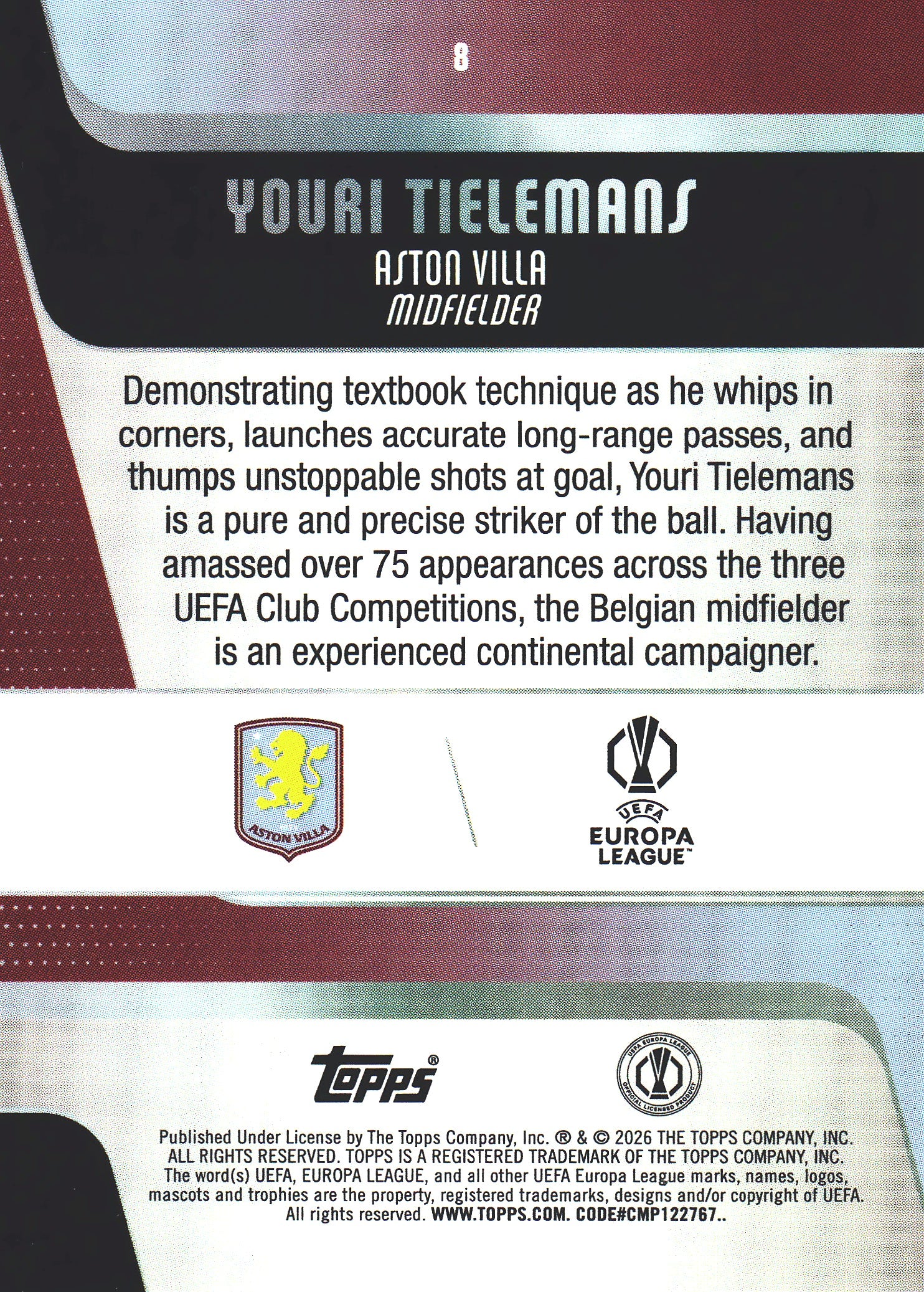 2025 Topps UCC Youri Tielemans Gold Inferno Holo /50 #8 Aston Villa