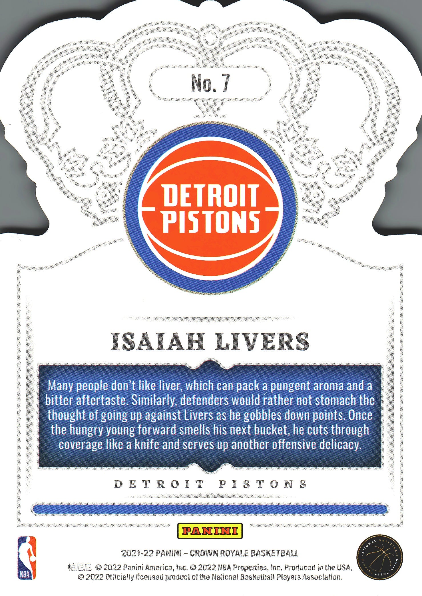 2021 Panini Crown Royale Isaiah Livers RC #7 Detroit Pistons