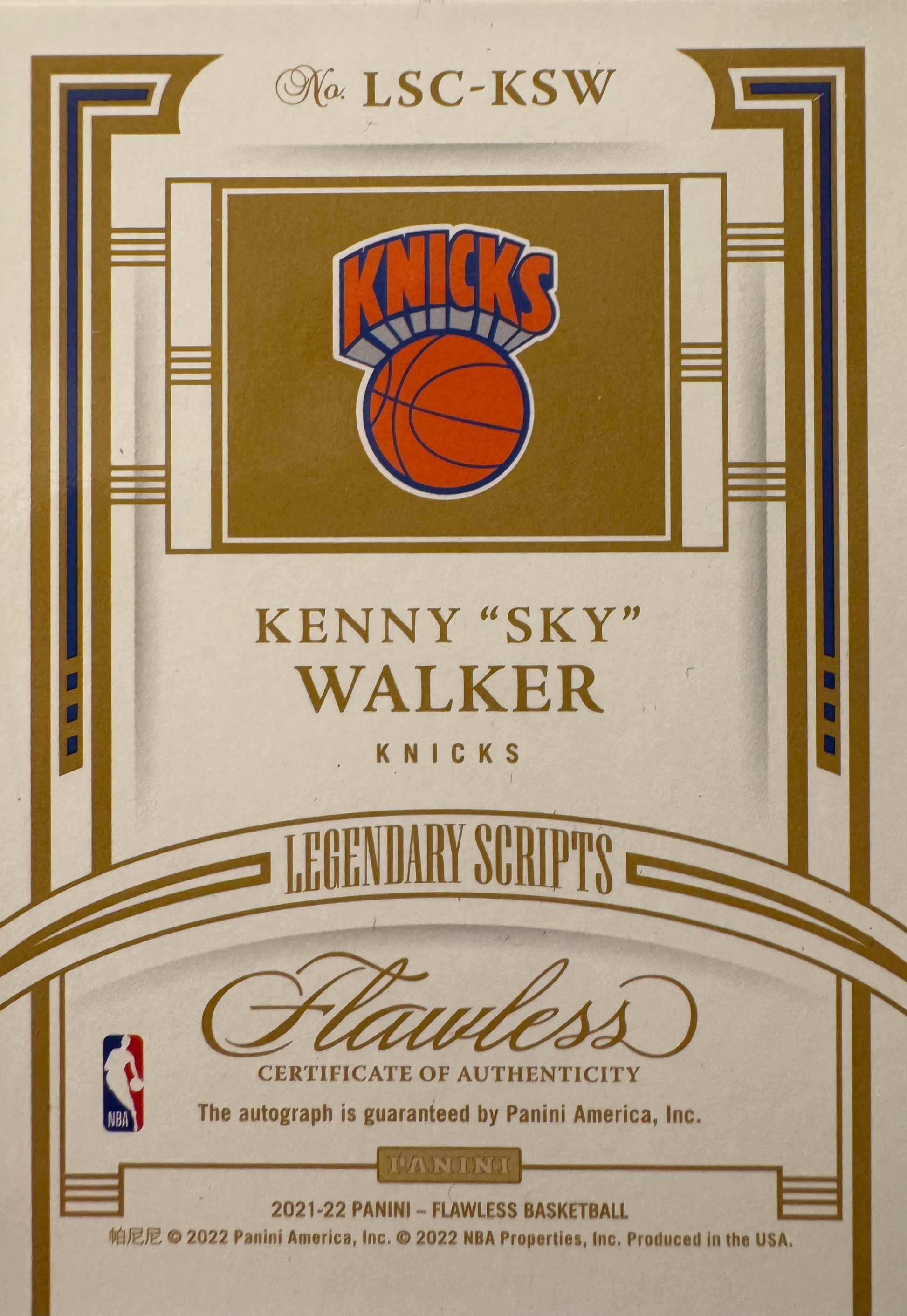 2021 Panini Flawless Autograph /25 Kenny Sky Walker #LSC-KSW New York Knicks