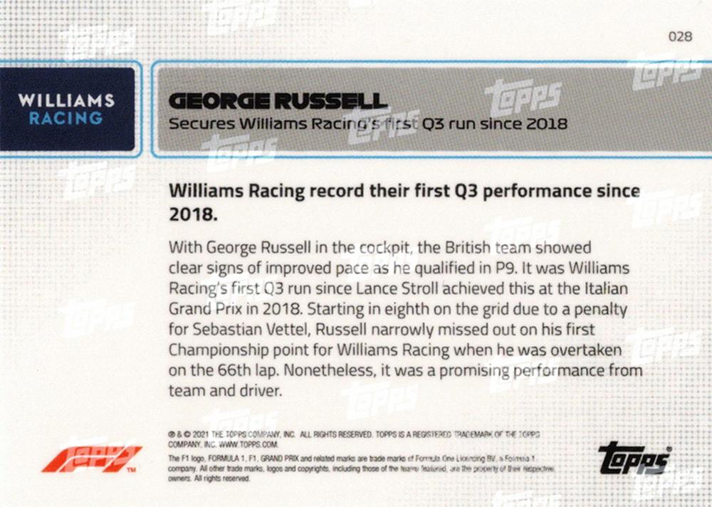 2021 Topps Now Formula 1 George Russell #028 Williams Racing Williams Racing