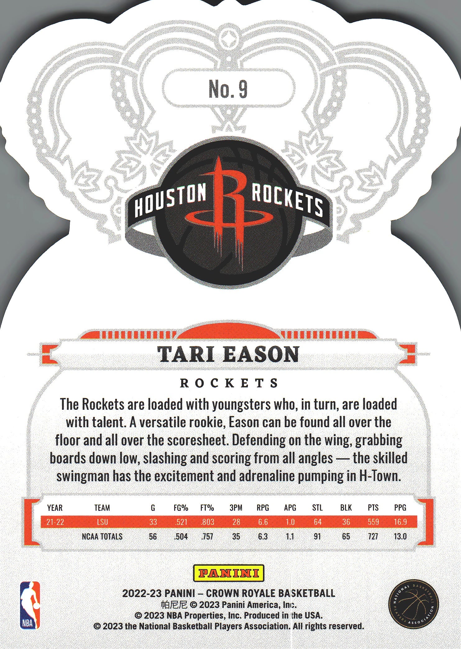 2022 Panini Crown Royale Tari Eason RC #9 Houston Rockets