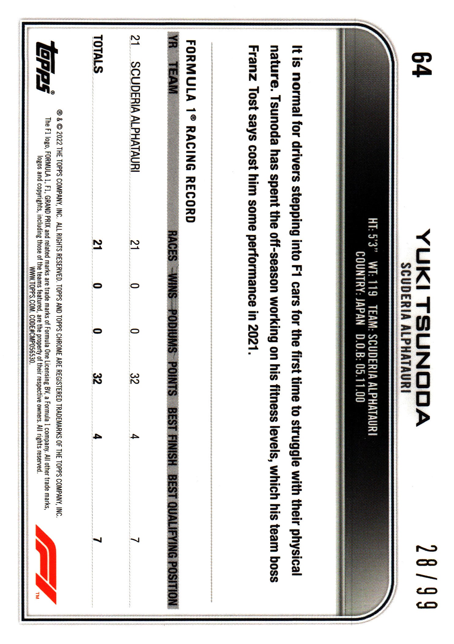 2022 Topps Chrome Sapphire Aqua /99 Yuki Tsunoda #65 AlphaTauri