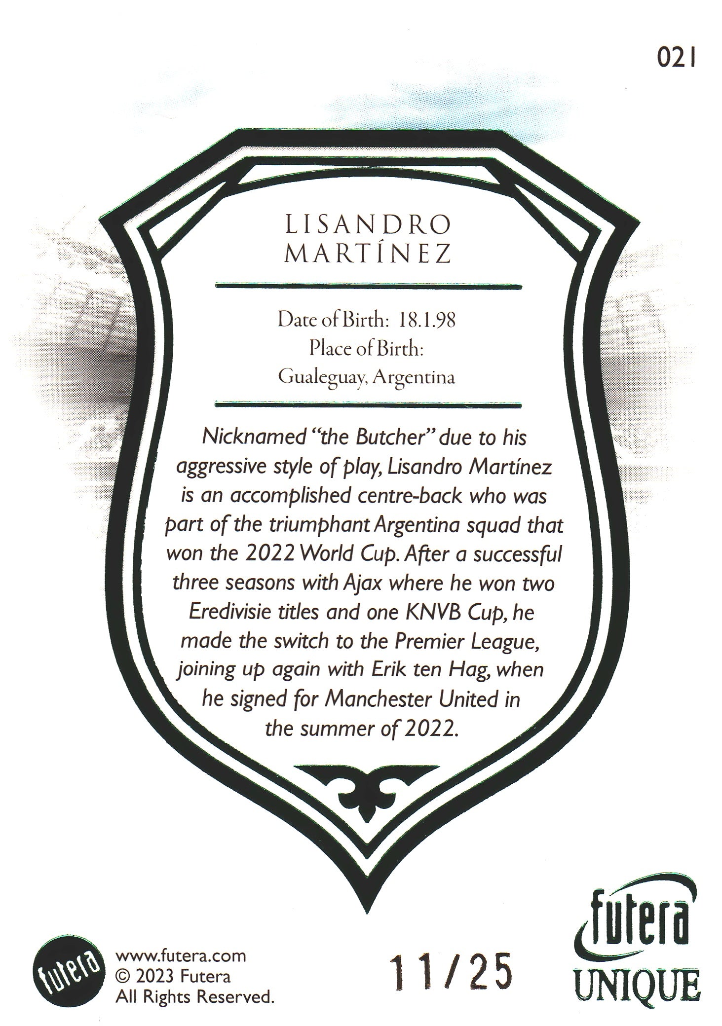2023 Futera Unique Lisandro Martinez Green /25 #21 Argentine