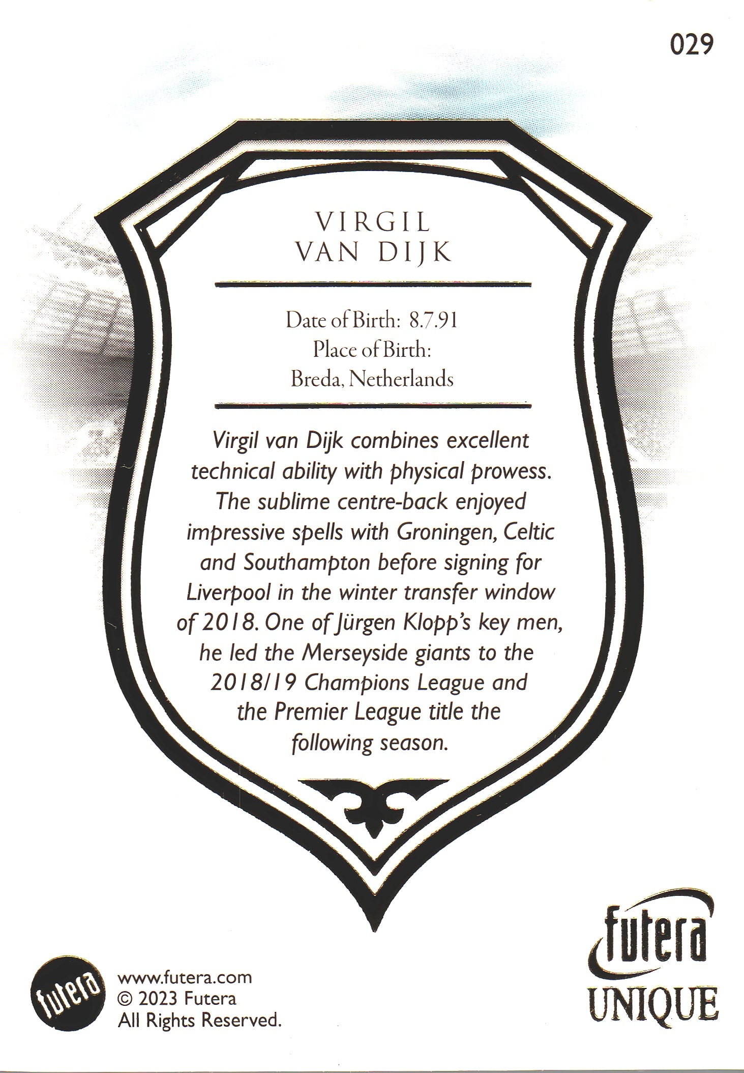 2023 Futera Unique Virgil van Dijk #29 Pays Bas