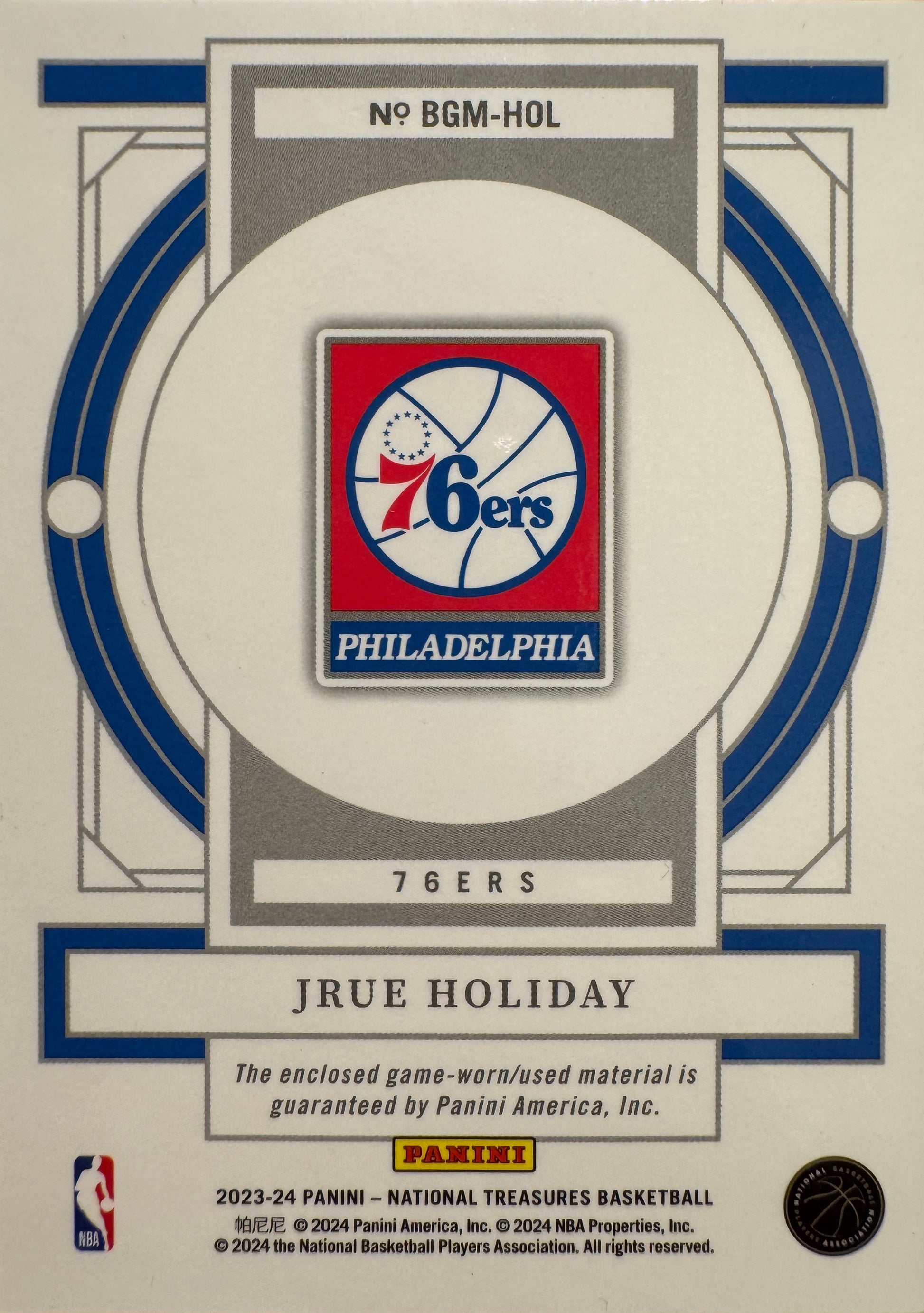 2023 Panini National Treasures Patch /99 Jrue Holiday #BGM-HOL Philadelphia 76ers