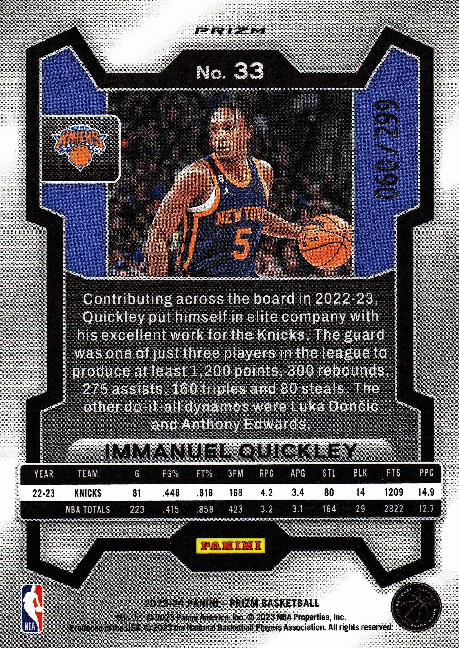 2023 Panini Prizm NBA True Red /299 Immanuel Quickley #33 New York Knicks