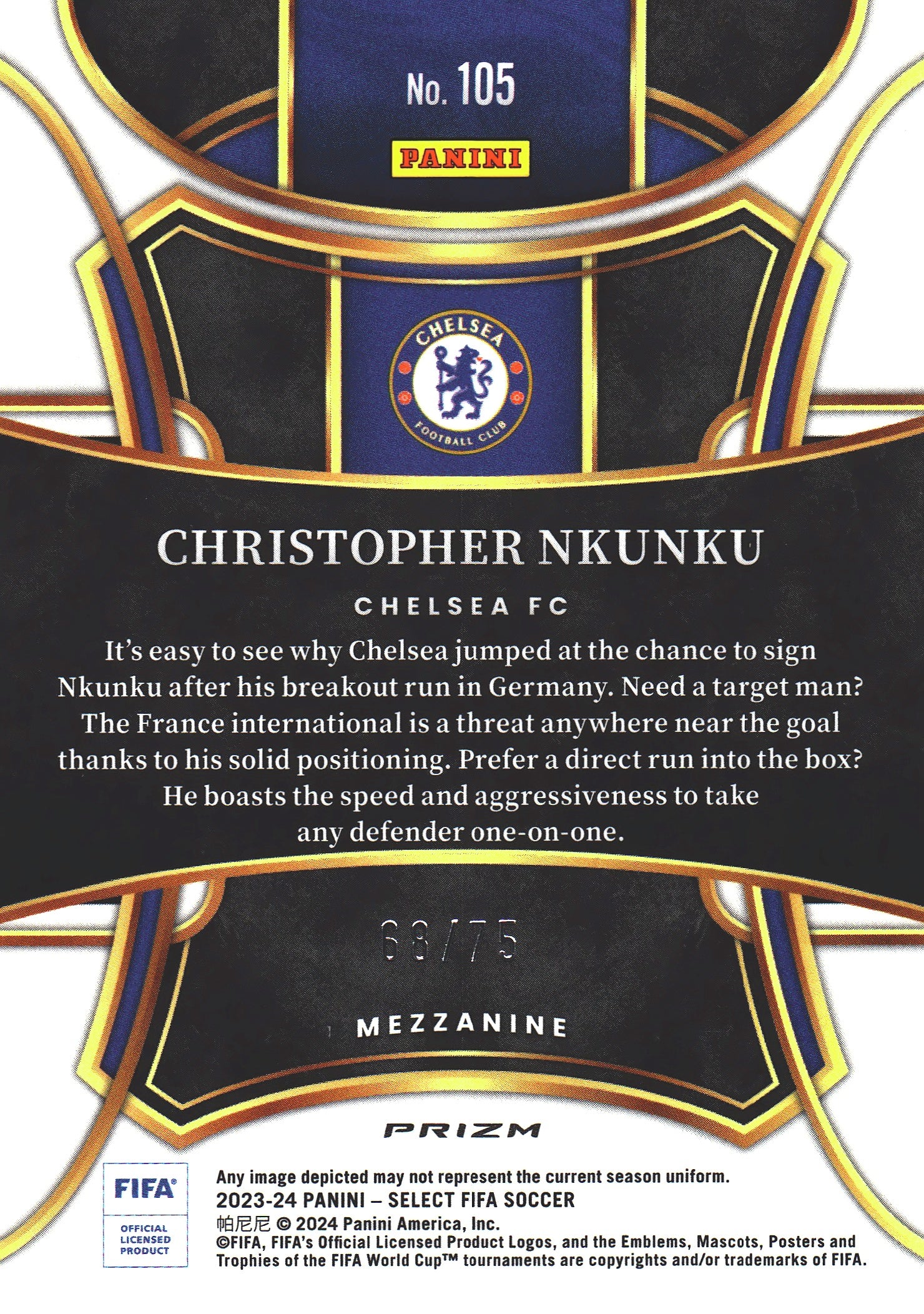 2023 Panini Select FIFA Pink /75 Christopher Nkunku #105 Chelsea
