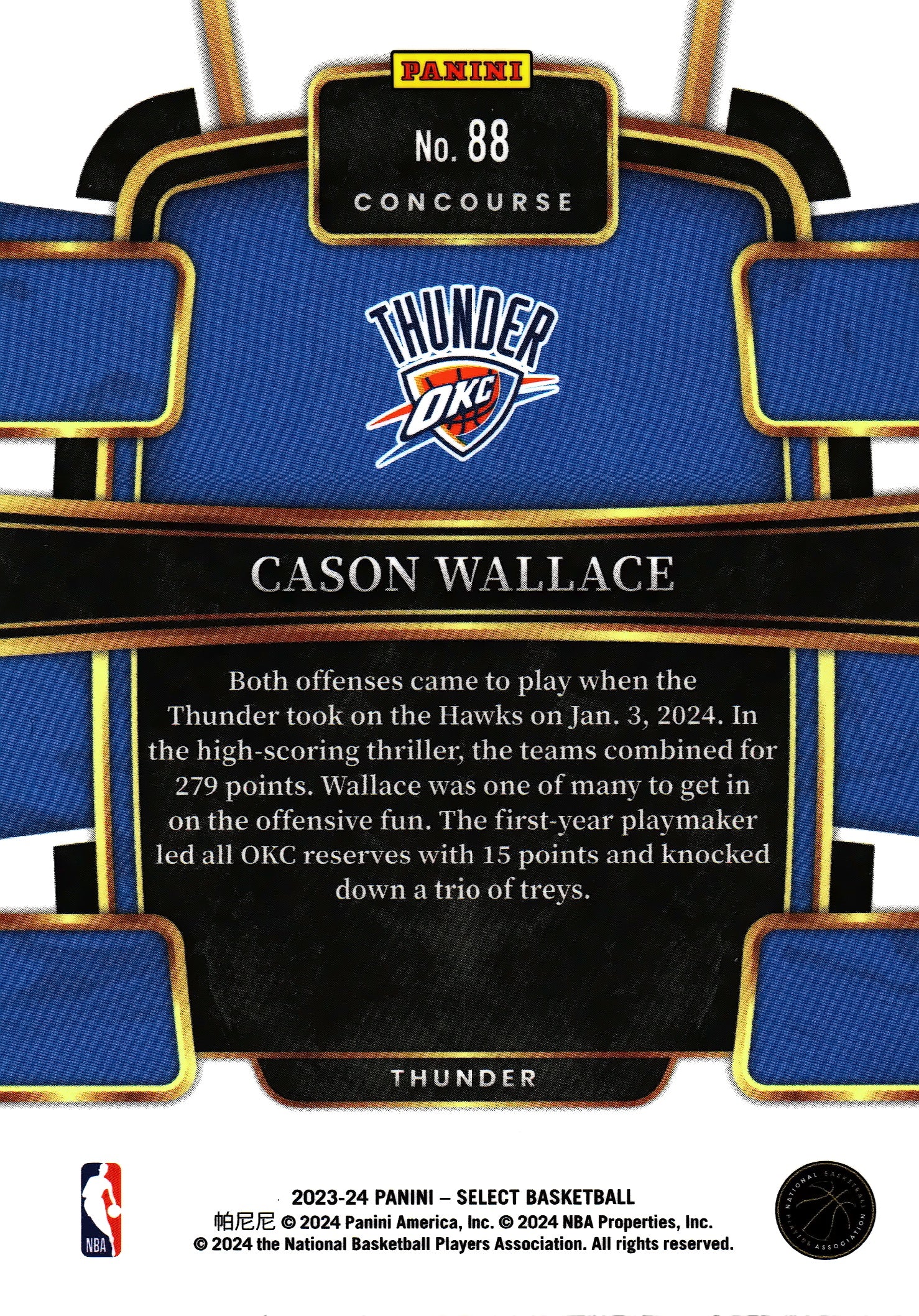 2023 Panini Select NBA Blue Cason Wallace RC #88 Oklahoma City Thunder