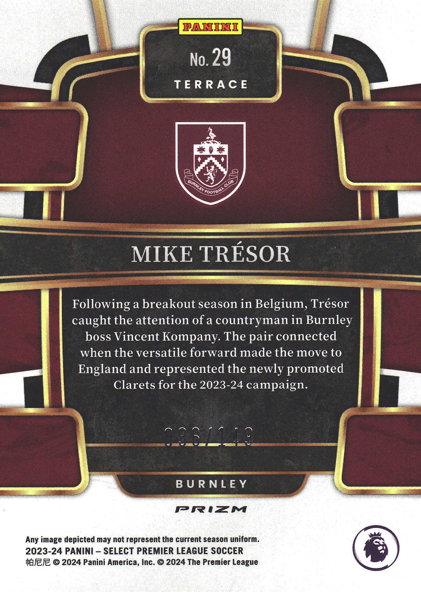 2023 Panini Select Premier League Red Wave /149 Mike Tresor #29 Burnley
