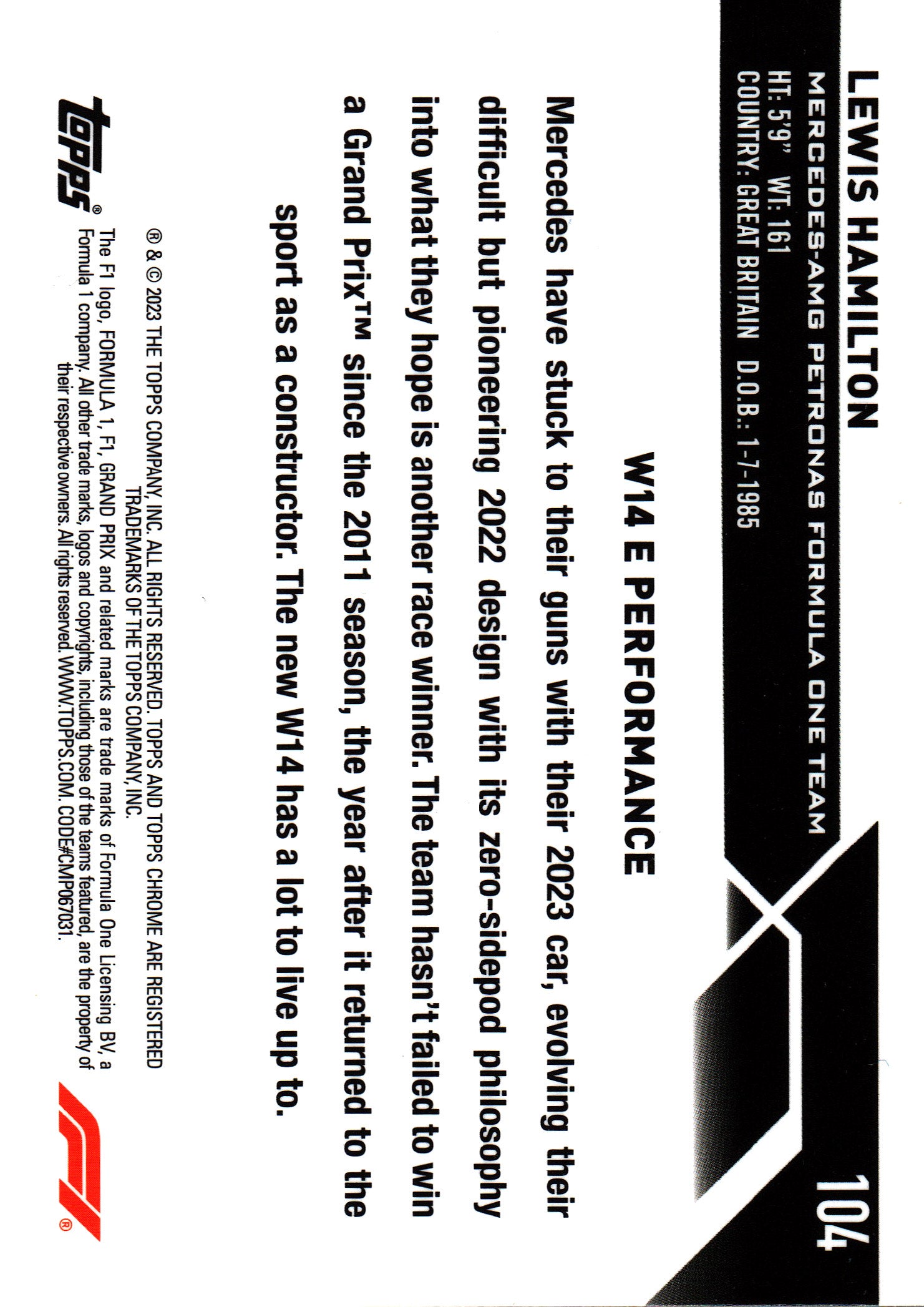 2023 Topps Chrome Sapphire Lewis Hamilton #104 Mercedes