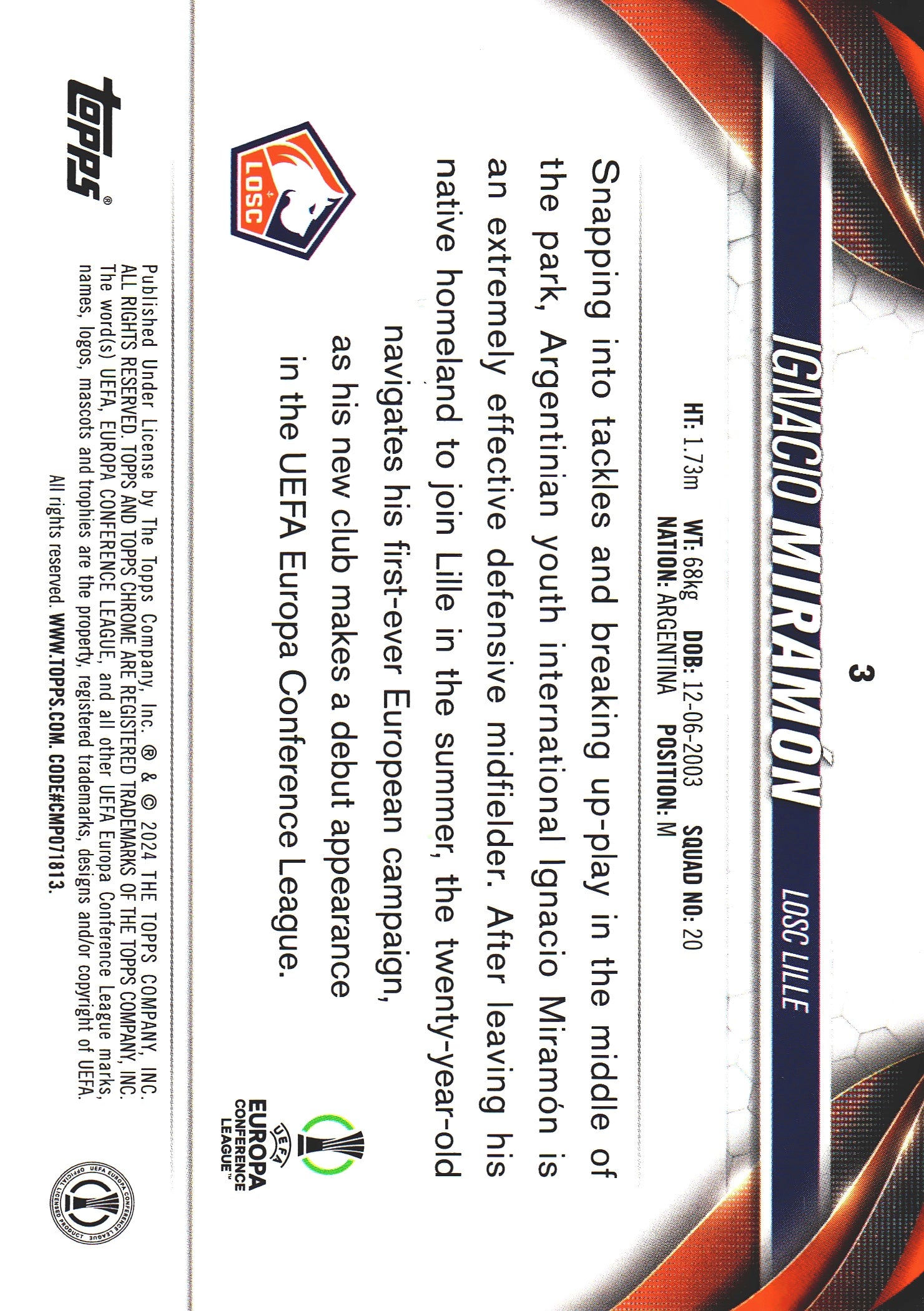 2023 Topps Chrome SP Pink Lava Ignacio Miramon RC #3 Lille OSC