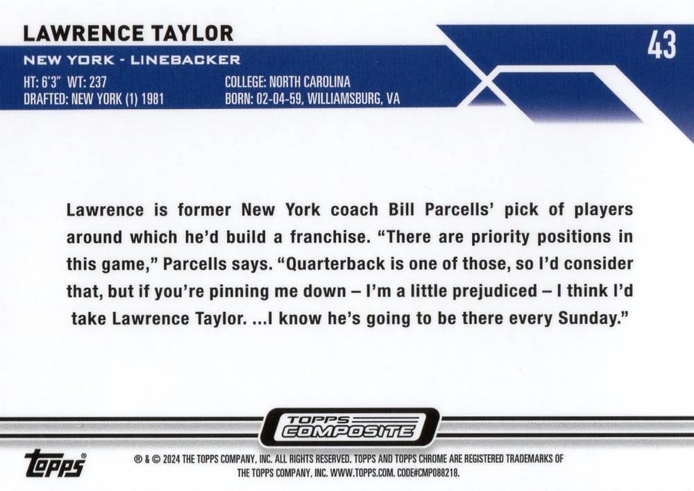 2023 Topps Composite Football Topps Chrome Sepia Refractor Lawrence Taylor #43 New York Giants