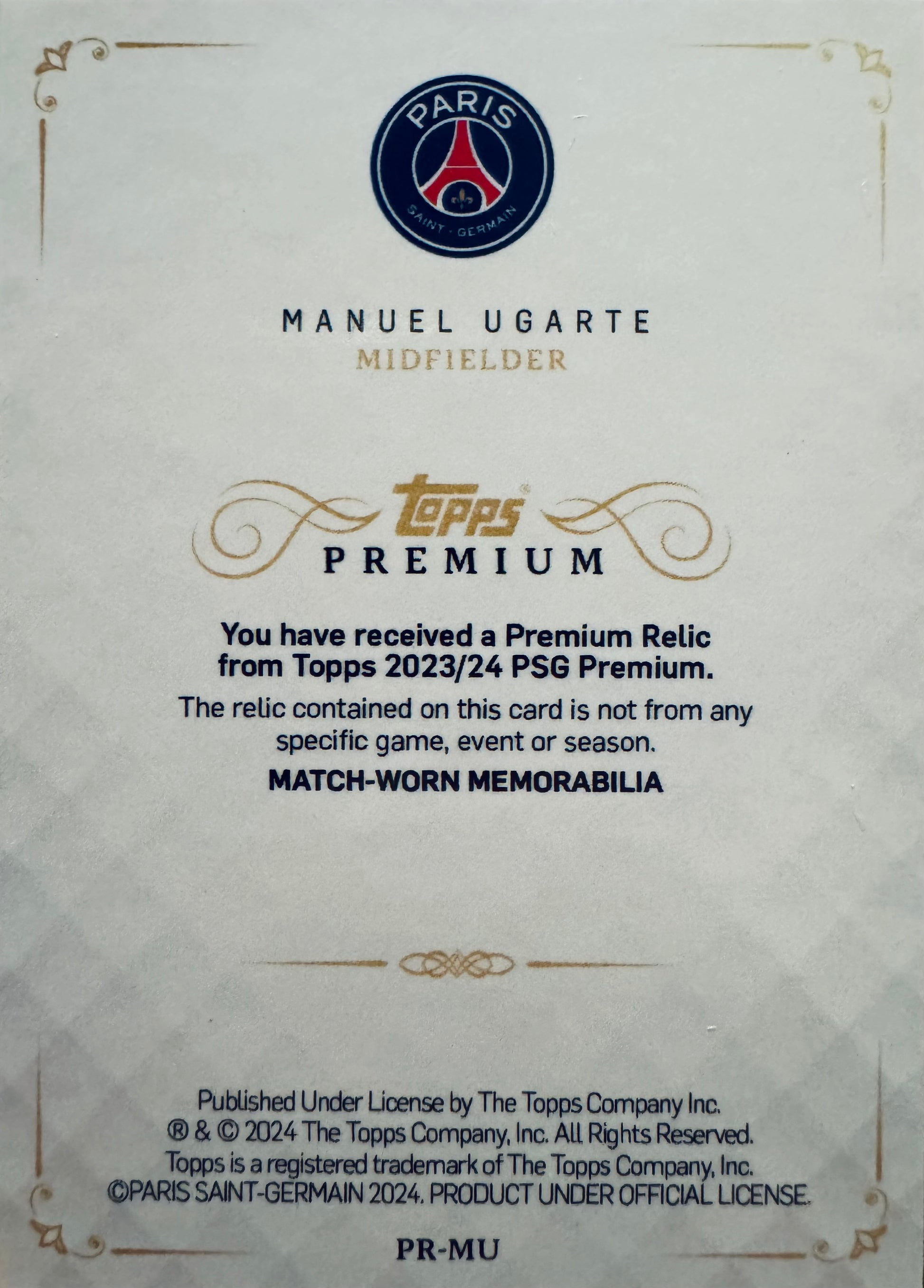 2023 Topps Premium Manuel Ugarte White Patch Black /10 #PR-MU PSG