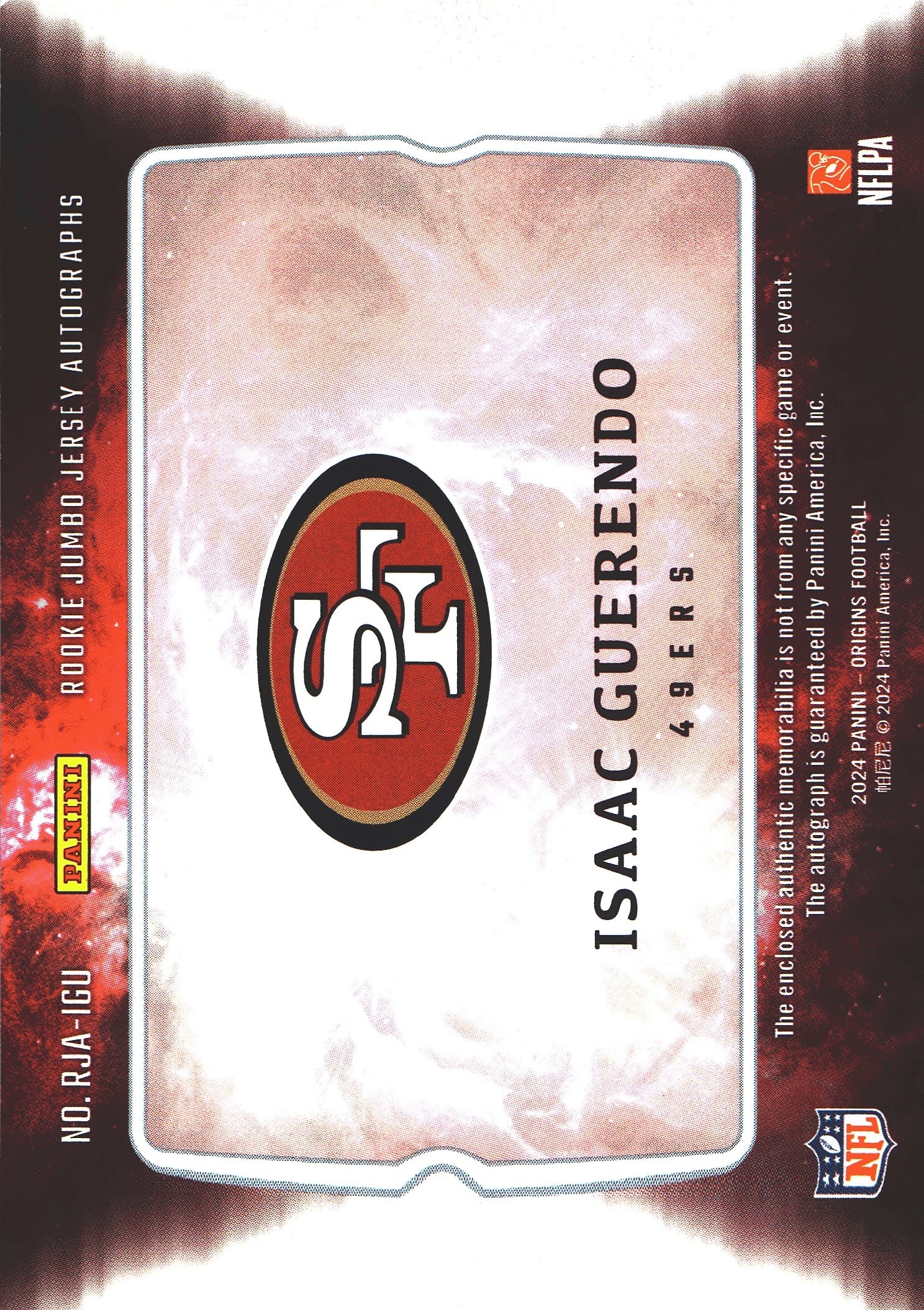 2024 Panini Origins Patch Autograph RPA Isaac Guerendo RC #RJA-IGU San Francisco 49ers
