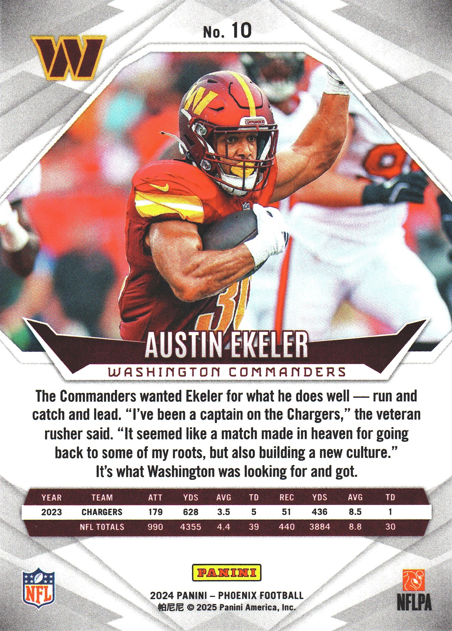 2024 Panini Phoenix International Austin Ekeler #10 Washington Commanders