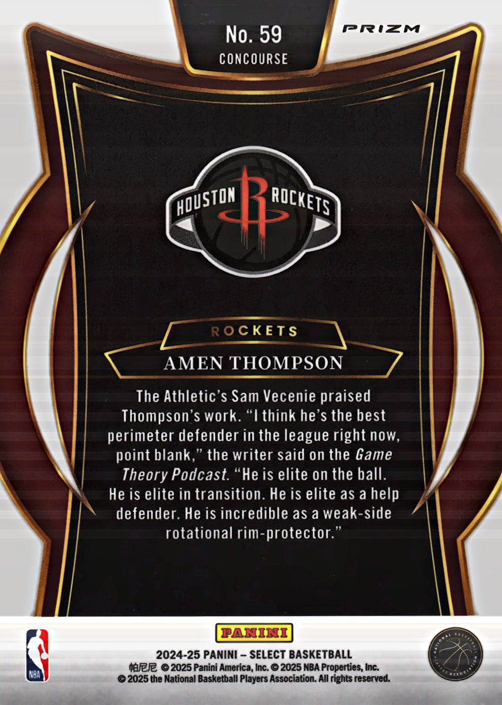 2024 Panini Select Red Cracked Ice Prizm Amen Thompson Concourse #59 Houston Rockets