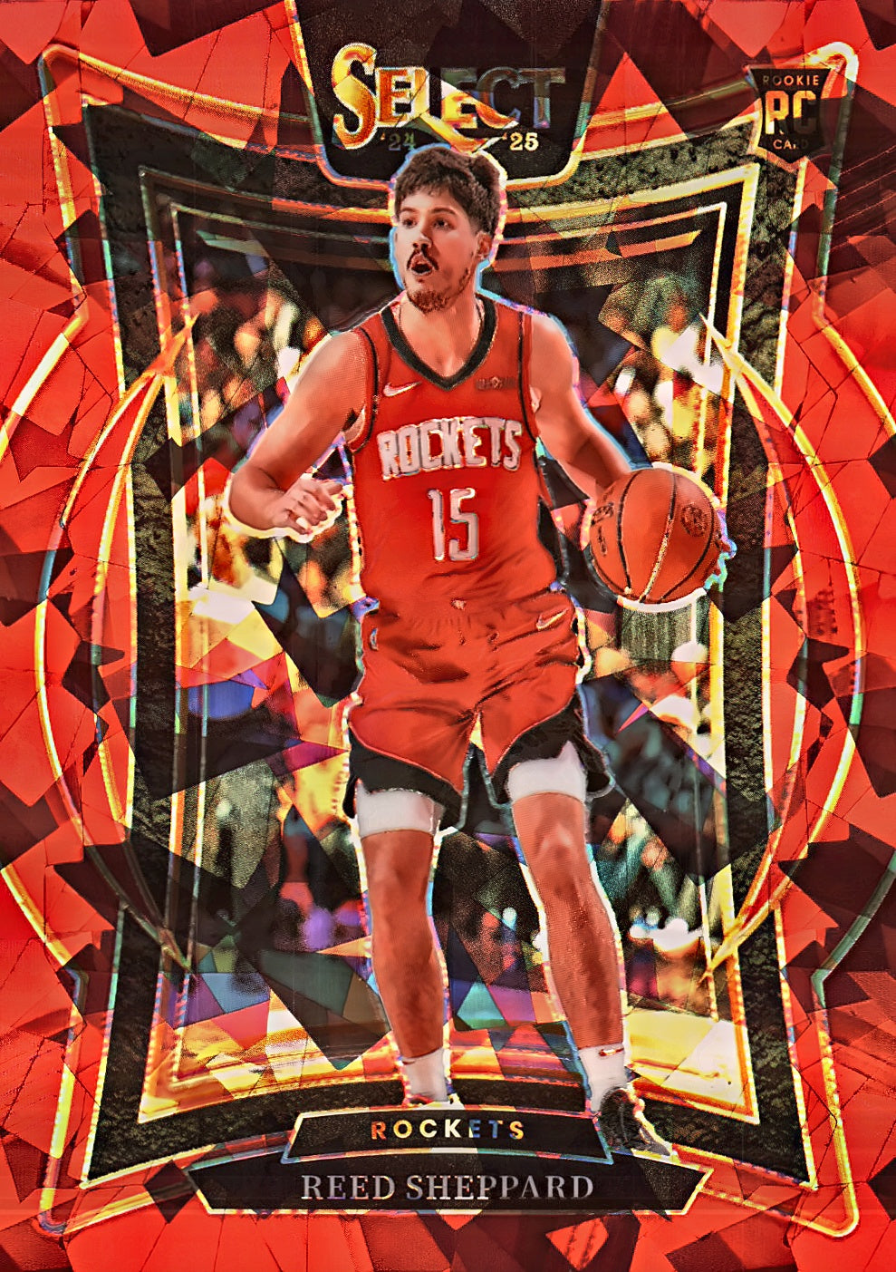 2024 Panini Select Red Cracked Ice Prizm Reed Sheppard RC Concourse #68 Houston Rockets