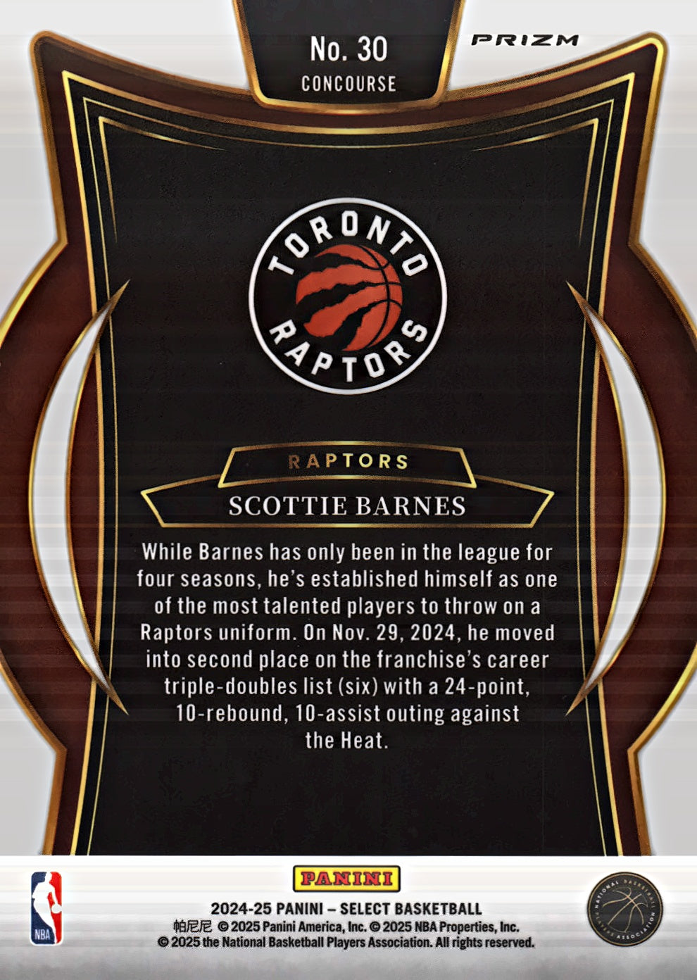 2024 Panini Select Red Cracked Ice Prizm Scottie Barnes Concourse #30 Toronto Raptors