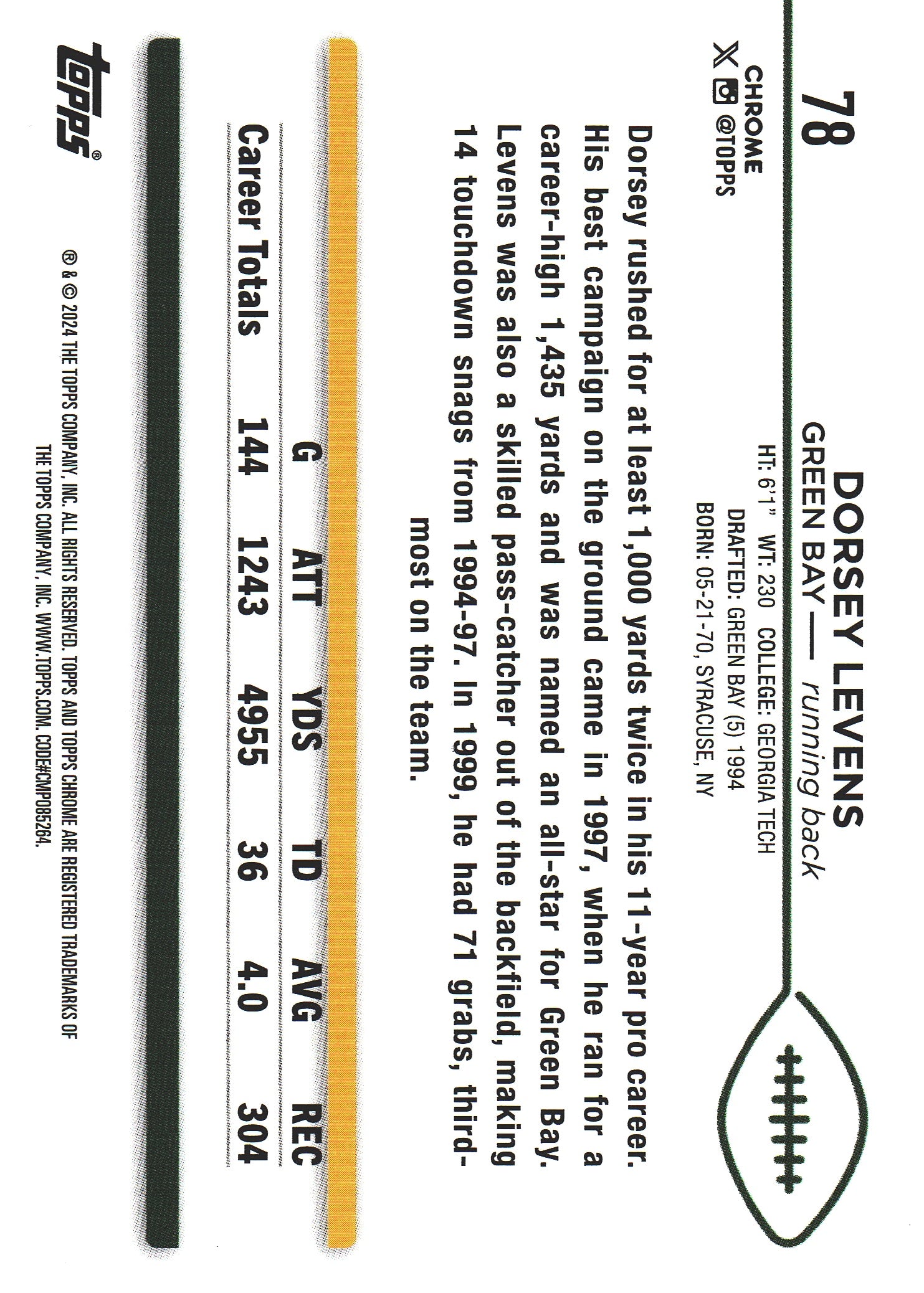 2024 Topps Chrome Dorsey Levens Purple Speckle /275 #78 Packers