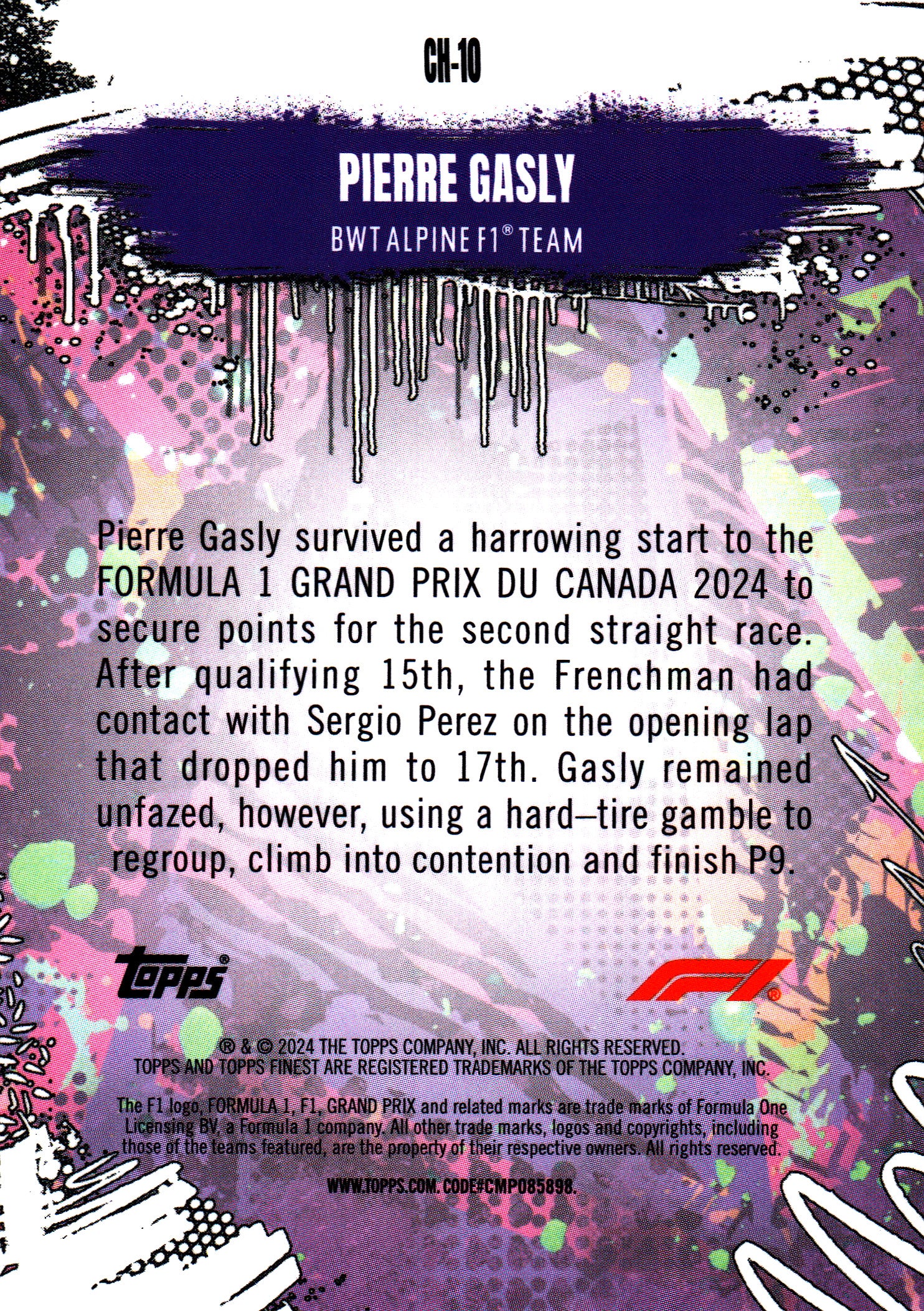 2024 Topps Finest Formula 1 Checkerboard Chaos Pierre Gasly #CH-10 Alpine