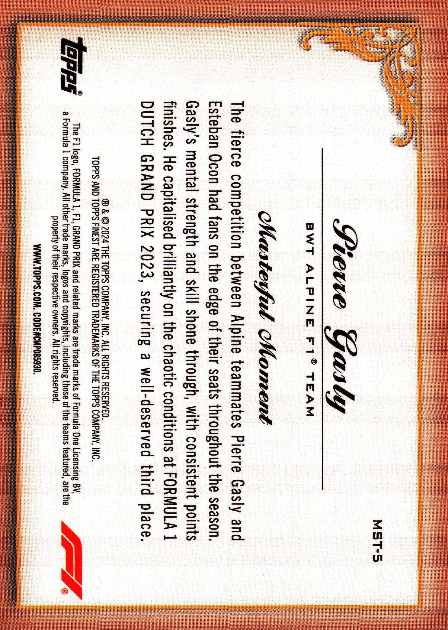2024 Topps Finest Formula 1 Checkerboard Finest Masters Pierre Gasly #MST-5 Alpine