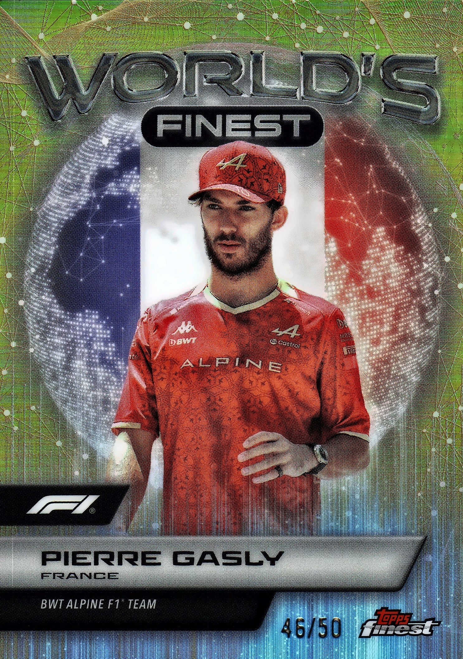 2024 Topps Finest Formula 1 World's Finest Gold /50 Pierre Gasly #WF-10 Alpine