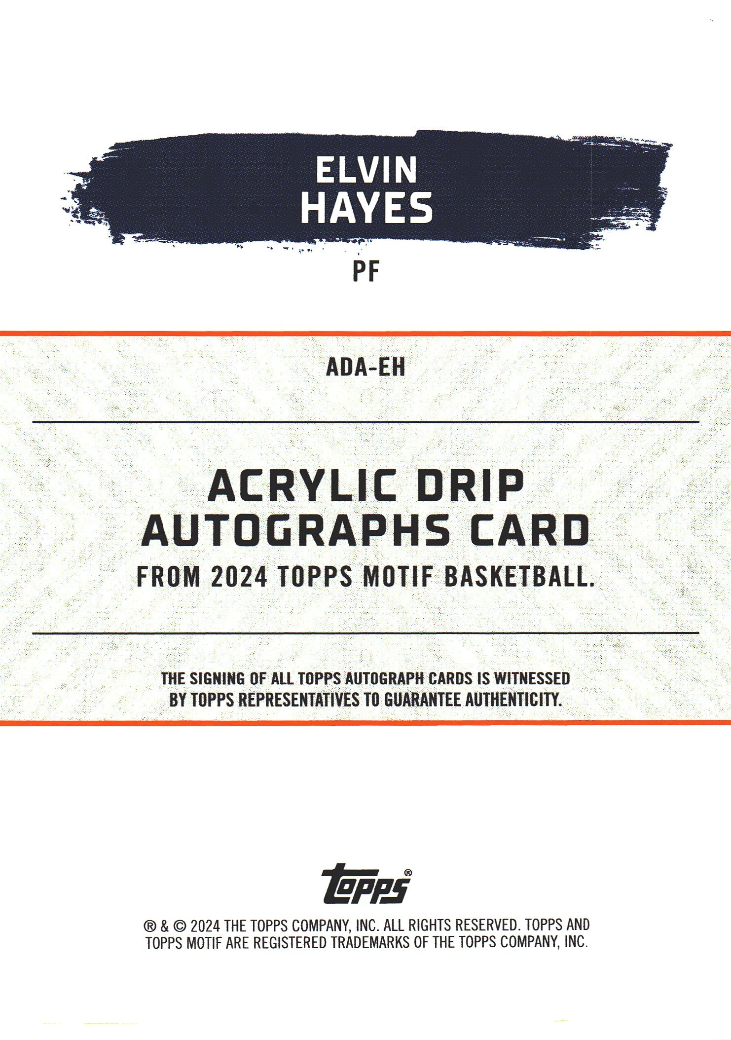 2024 Topps Motif Acrylic Drip Autograph /99 Elvin Hayes #ADA-EH Washington Wizards