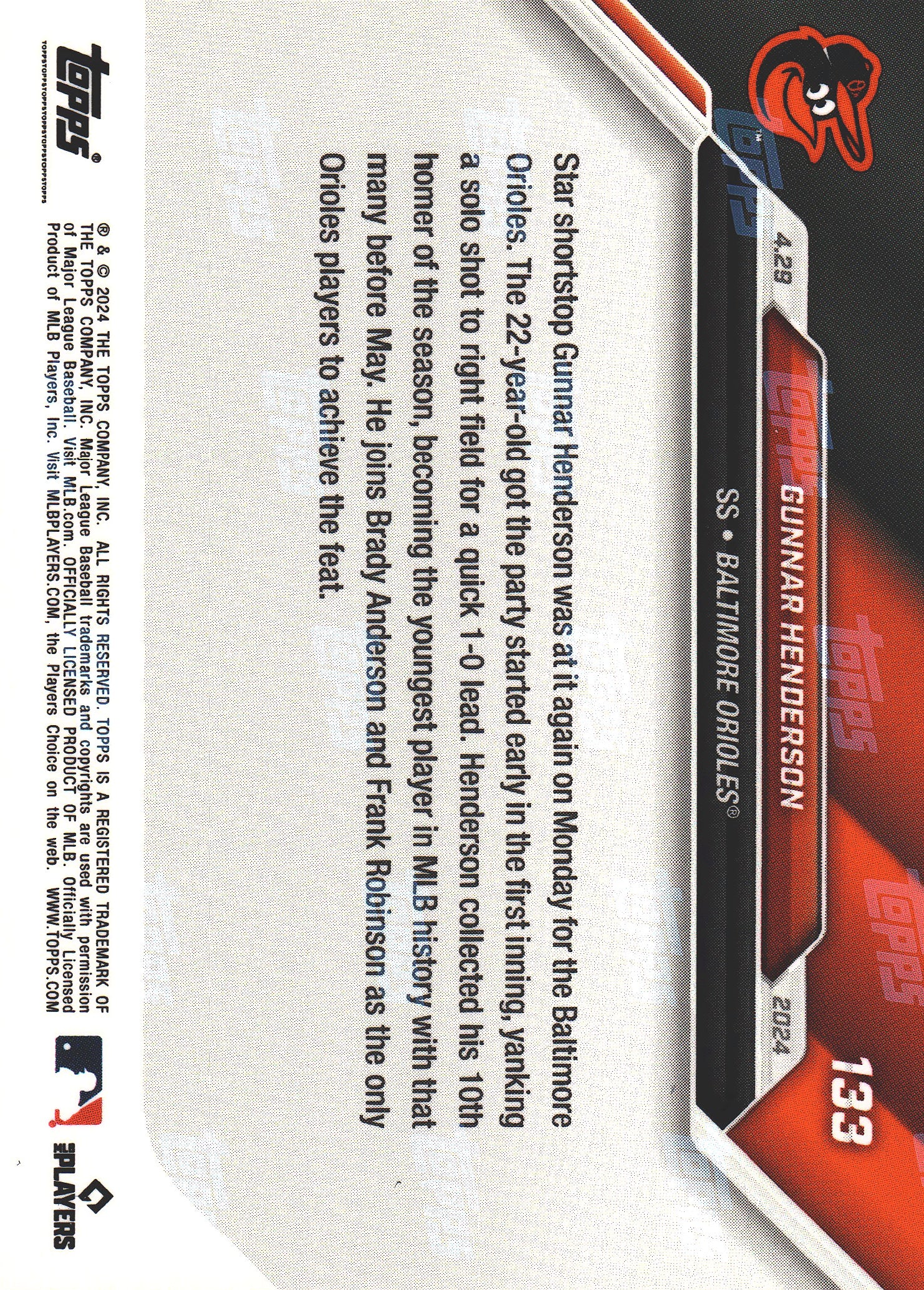 2024 Topps Now Gunnar Henderson #133 Baltimore Orioles
