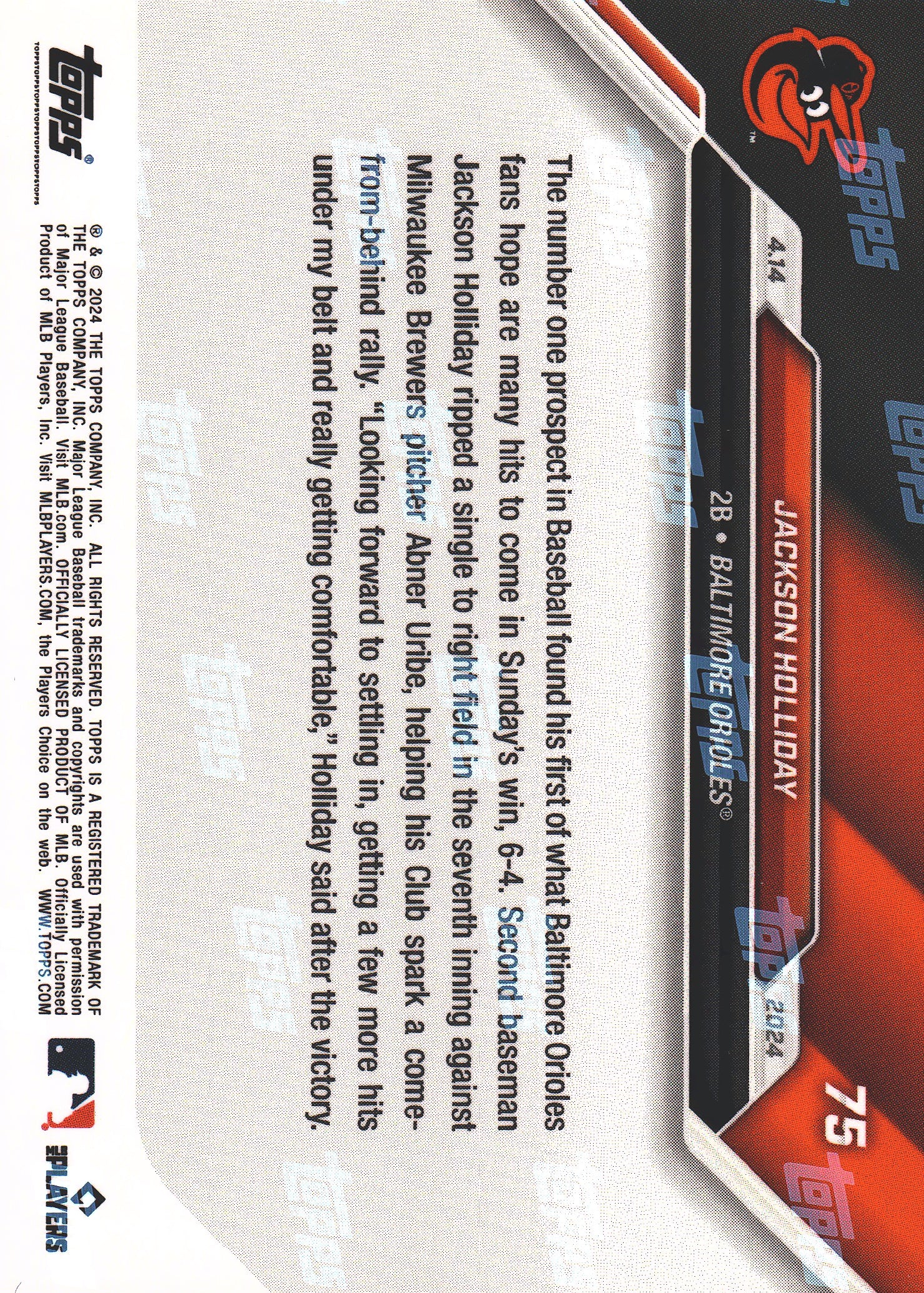 2024 Topps Now Jackson Holliday RC #75 Baltimore Orioles